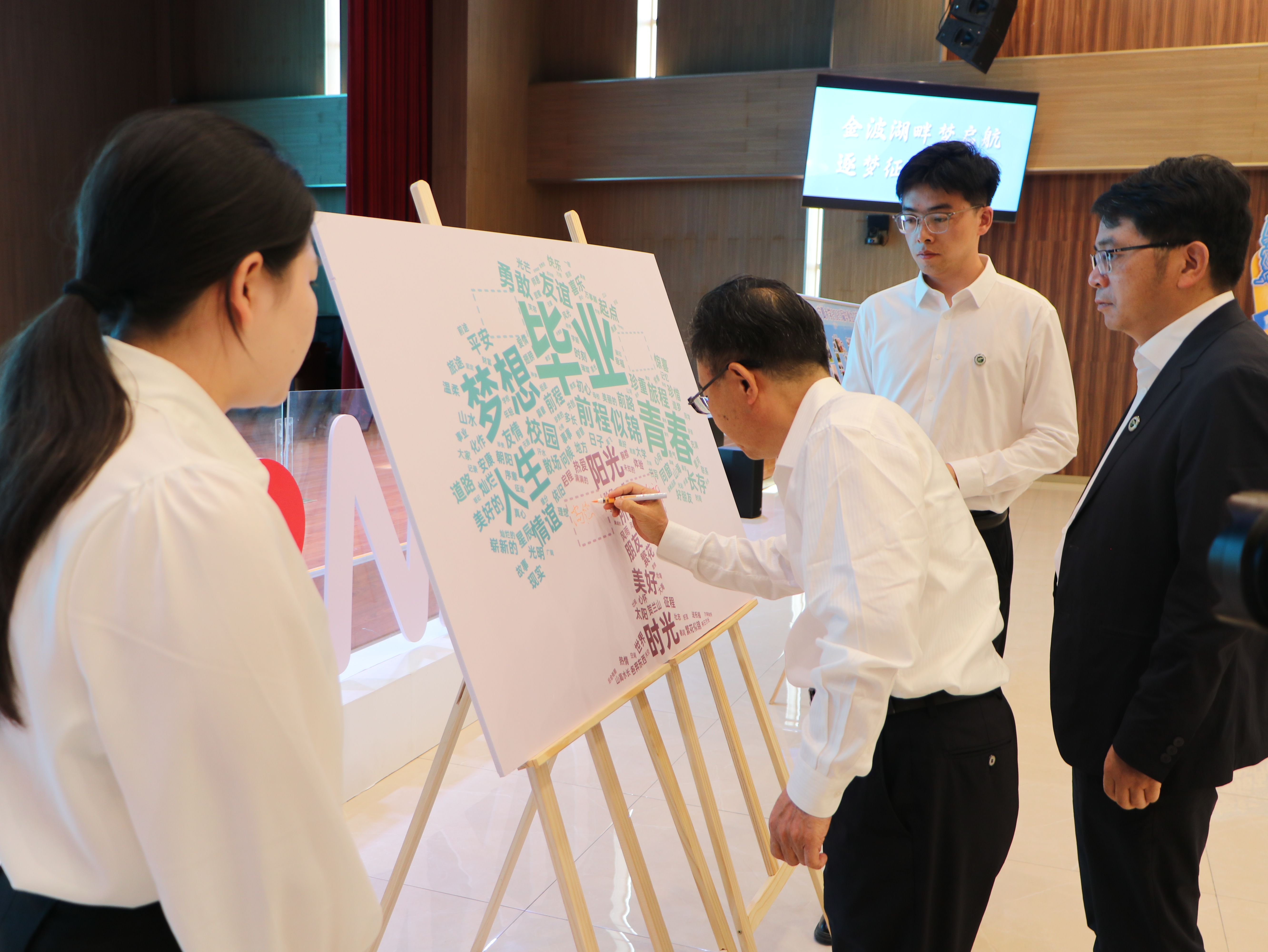 座谈会前,校领导与毕业生代表共同参观了beat365官网部分毕业生毕业作品展,观看了2025届毕业生主题微电影《启航3》。