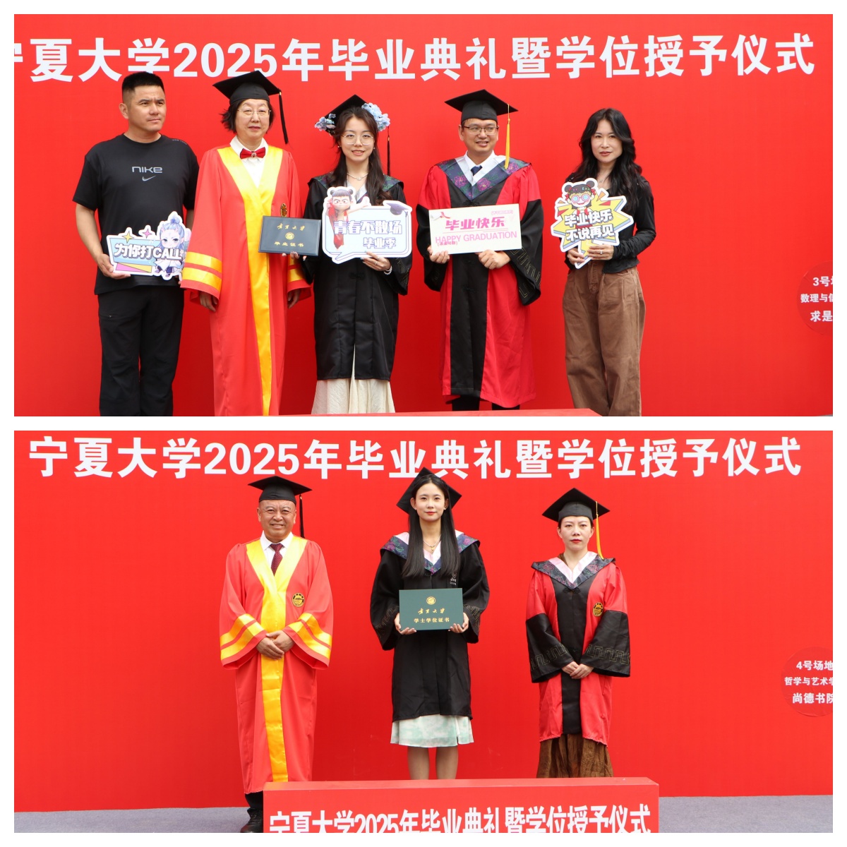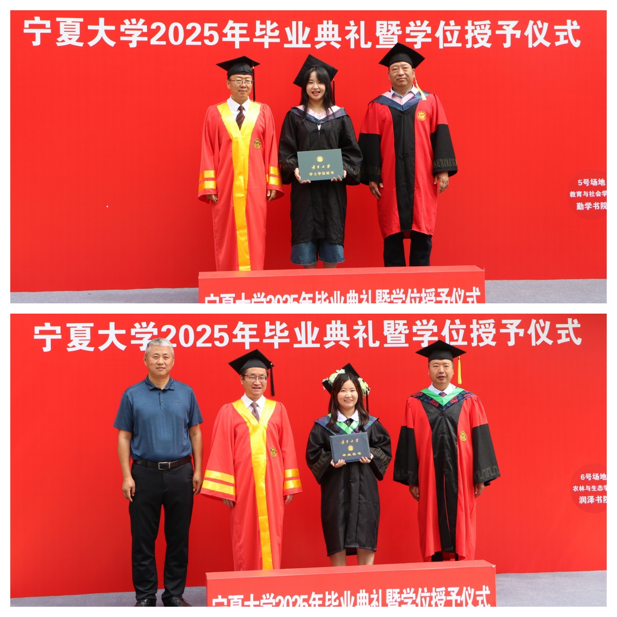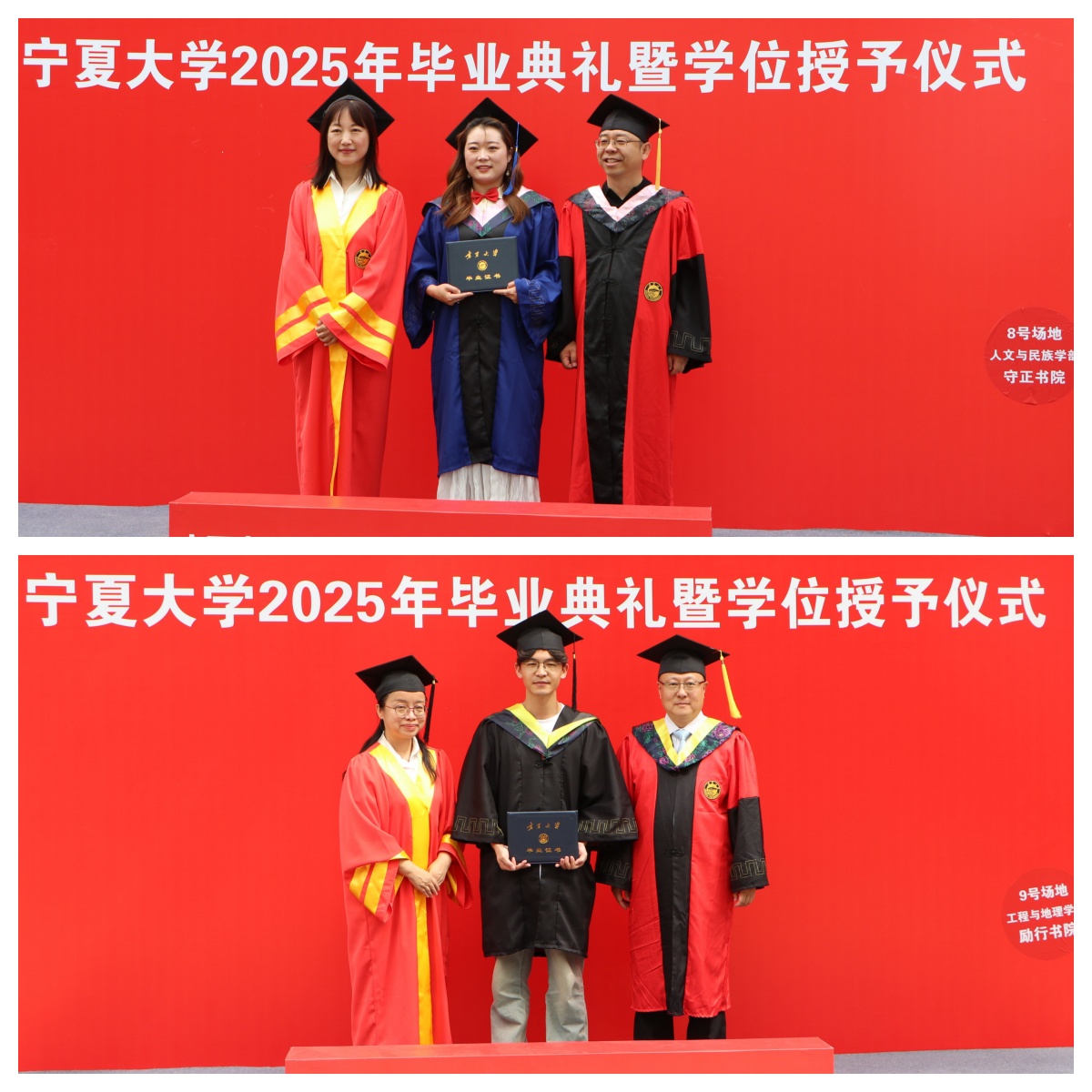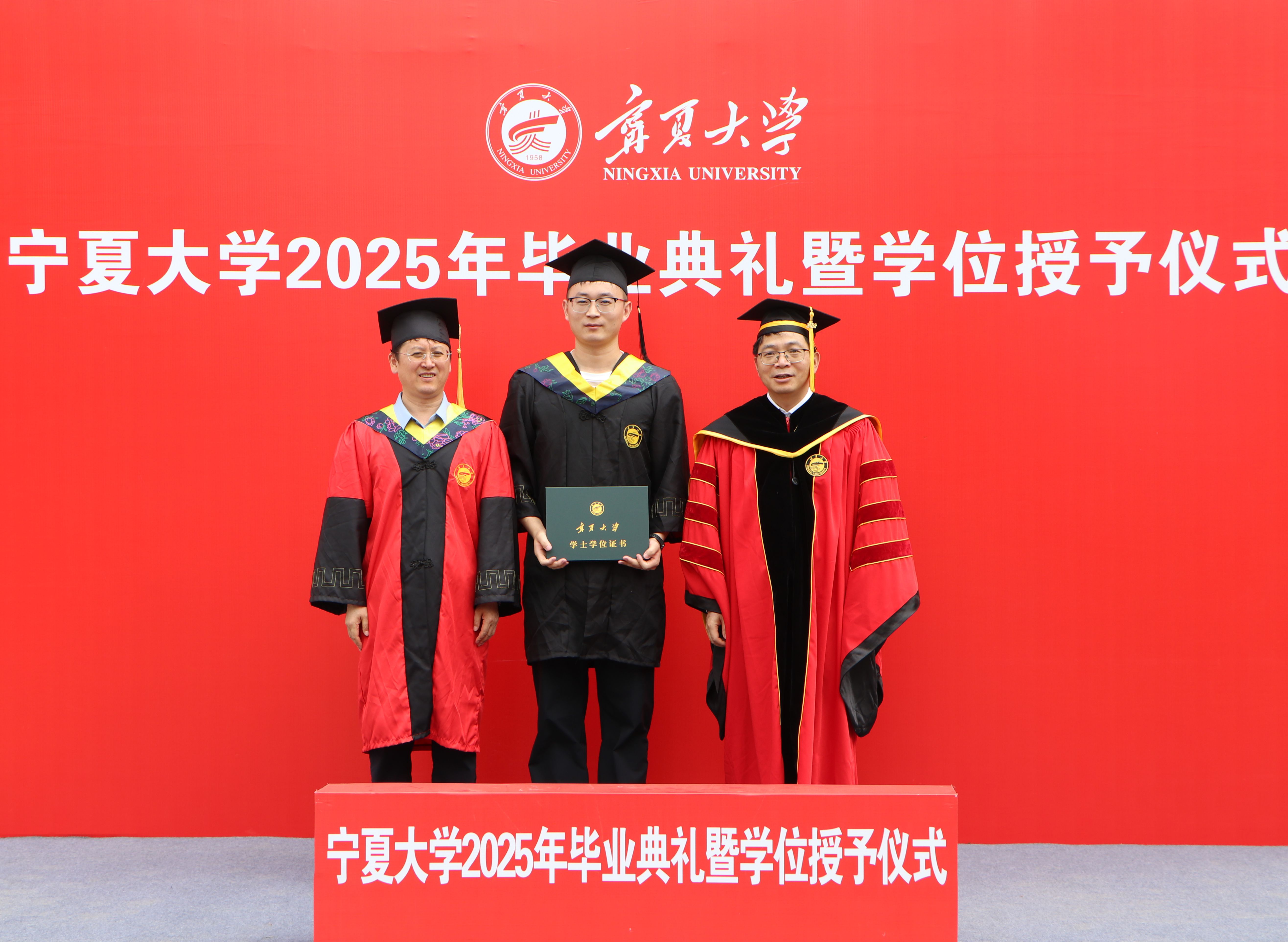 【beat365唯一官方网站新闻中心讯 王文娣/文 张景 姬晓姗 李明花 中卫校区/图】贺兰山下青衿别,万里云程自此开。6月19日上午,beat365唯一官方网站2025年毕业典礼暨学位授予仪式在文萃校区大学生活动中心和中卫校区应理报告厅同步举行。2025届毕业生将挥手告别学校,背上青春的行囊起航奔赴祖国各地。全体在校校领导及学位评定委员会组成人员出席毕业典礼,校党委常委、副校长黄河主持毕业典礼。