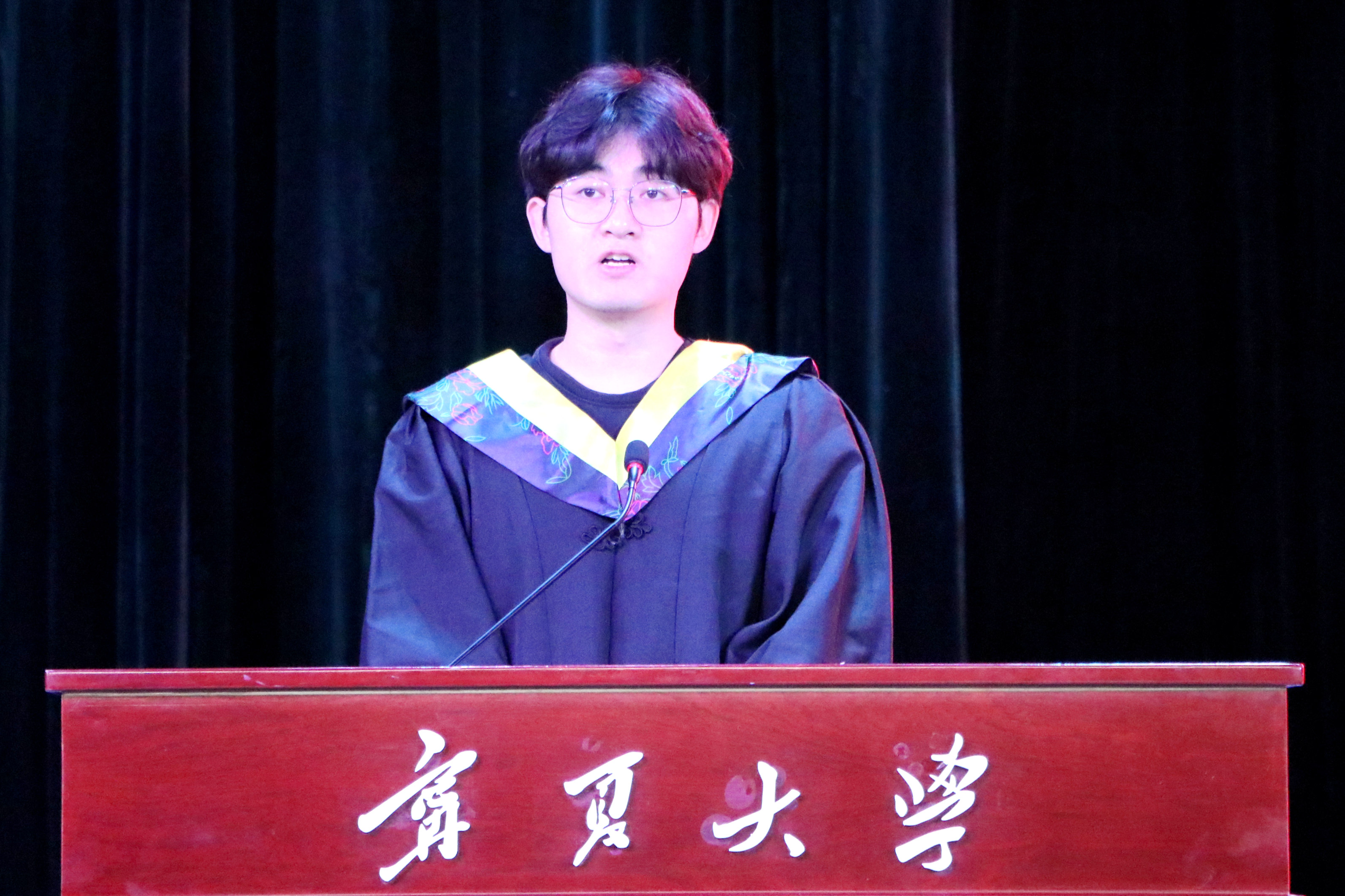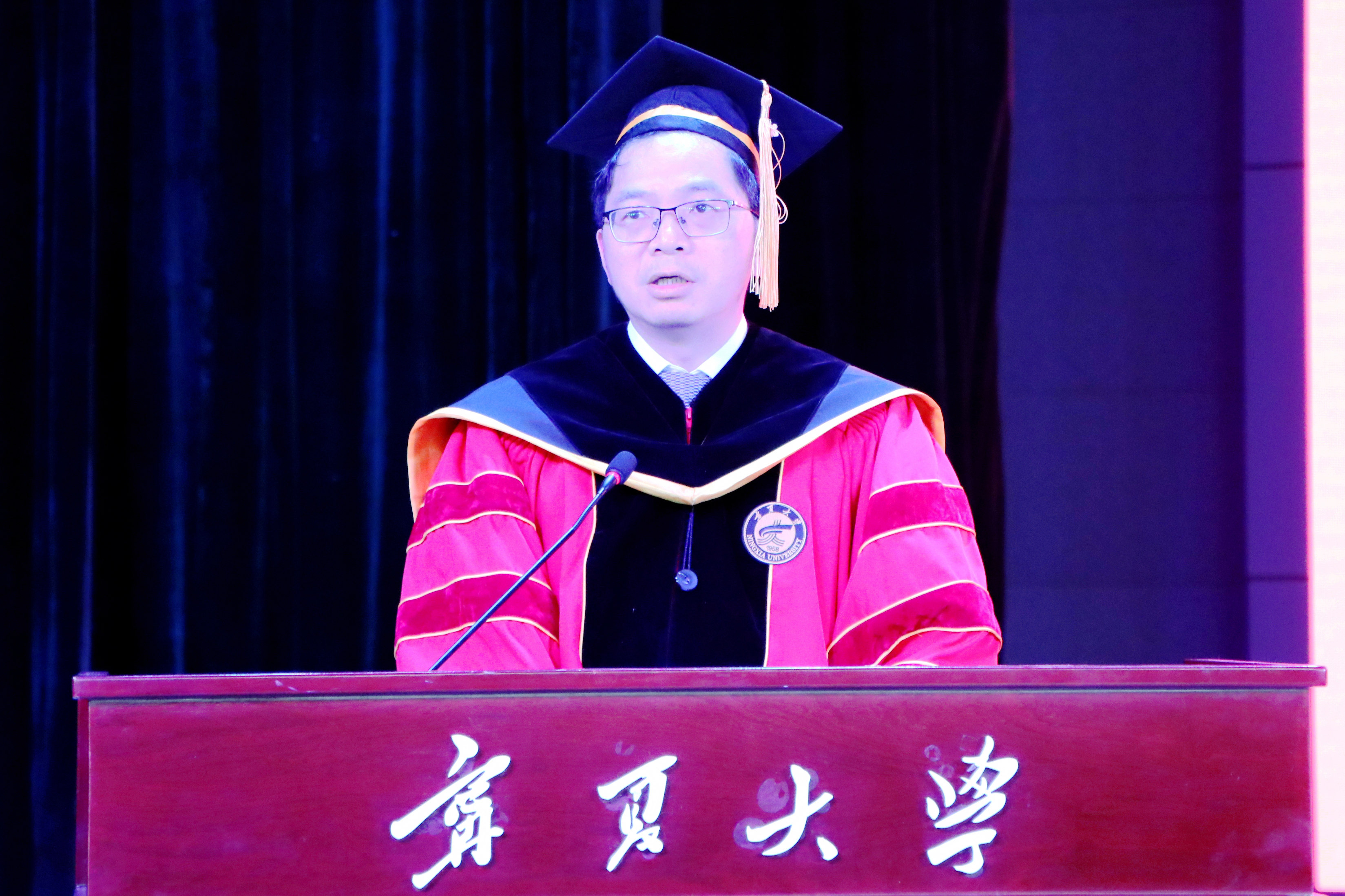 校友代表、第十四届全国人大代表、智慧宫国际文化传播集团董事长张时荣结合上学及工作经历,寄语同学们要坚守初心、做有信念的追梦者,为热爱的事业奋斗;勇于创新、打破思维定式,在跨界融合中抢抓机遇;胸怀天下、将个人价值融入社会与国家,在服务国家战略、推动宁夏发展的广阔天地中,在黄河流域生态保护和高质量发展的伟大实践中书写属于宁大人的精彩华章。