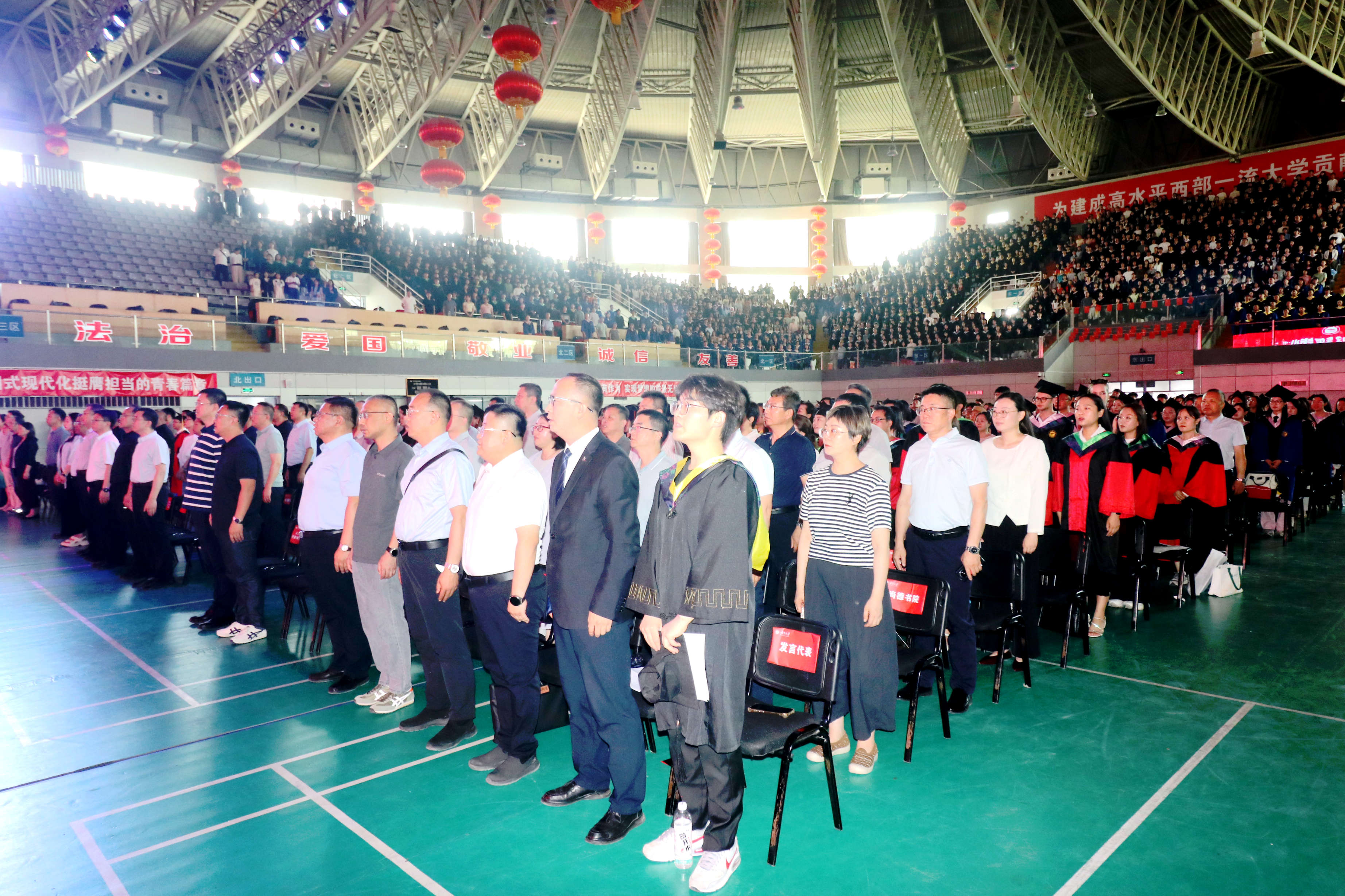 9时30分,毕业典礼在庄严的国歌声中拉开序幕。