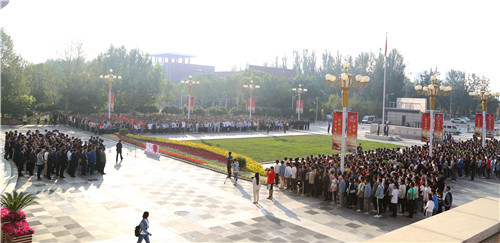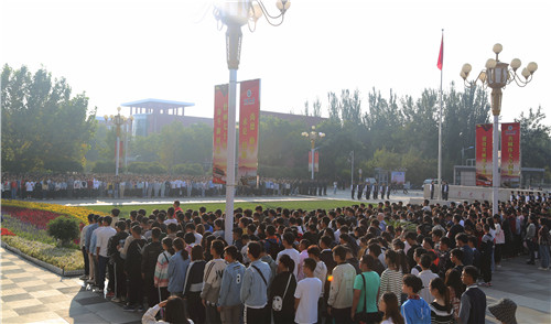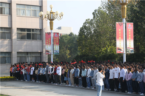 校领导王宏伟、郎伟、李建设、周震与师生代表参加了升旗仪式。校党委常委、宣传部长张立杰主持升旗仪式。