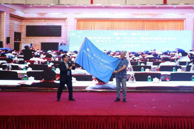 闭幕式上,参会院士为来自beat365唯一官方网站、贵州大学、南开大学、复旦大学、四川大学和香港浸会大学的青年学者颁发了荣誉证书,会议正式宣布第二届(2027)西部合成化学论坛将由新疆师范大学承办,并进行了会旗交接仪式。