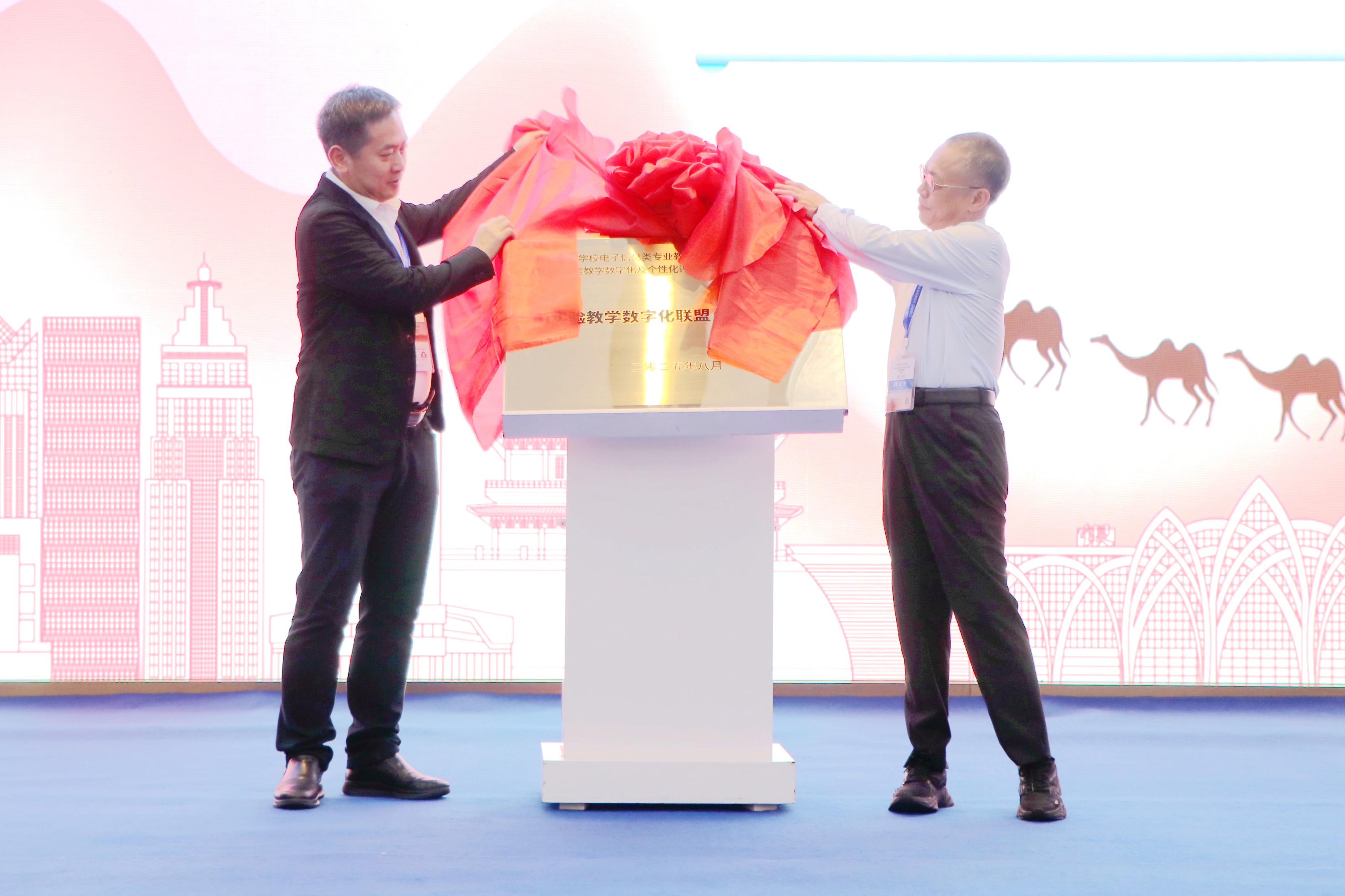 开幕会后,教育部高等学校电子信息类专业教学指导委员会秘书长邓成主持举行了具有里程碑意义的“AI实验教学数字化联盟(电子信息类)”授牌仪式,龙芯副总裁杜安利发布“教指委-龙芯产教融合新形态教材选题”。