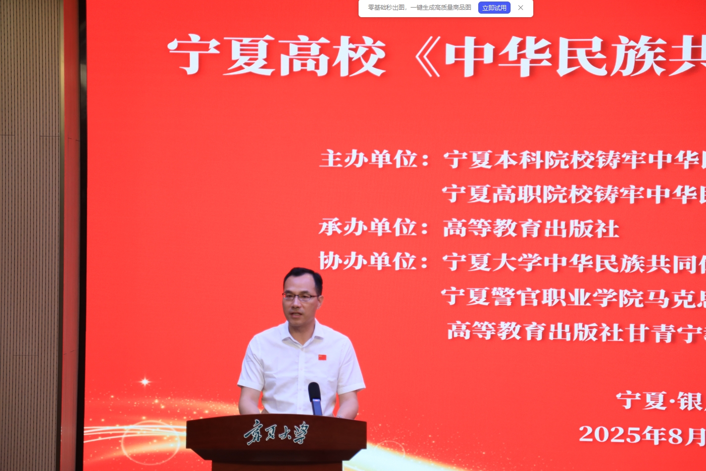 宁夏本科院校课程联盟副主任委员、北方民族大学中华民族共同体学院教授、博士生导师杨蕤现场解读了自治区教育工委、教育厅相关改革试点实施方案,并分享授课经验,强调需妥善处理历史与思政、逻辑与引导、理论与现实、知识与科技、教材内容与课堂语言五大关系,为教师授课提供清晰指引。