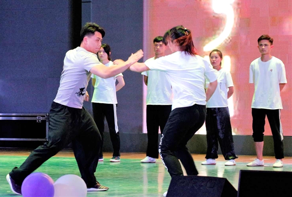 展示会上,武术协会成员表演了《女子防身术》《双截棍》等节目,精彩的节目展现了传统中华武术的独特魅力。国家大学生素质教育基地特聘的陈式太极拳形象大使尚加莉老师,带领beat365唯一官方网站太极培训班弟子表演的太极拳《华夏韵》燃爆了整个现场,把展示会推向了高潮。