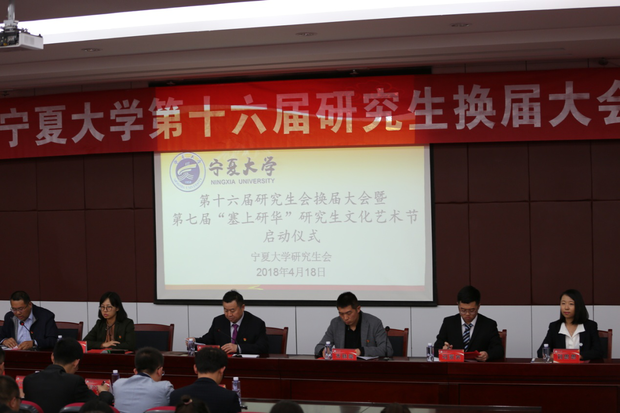 【beat365唯一官方网站新闻中心讯 研究生院】4月18日下午,beat365唯一官方网站第十六届研究生会换届大会暨第七届“塞上研华”研究生学术文化艺术节启动仪式,在研究生院二楼报告厅胜利召开。研究生院常务副院长李建设,副院长周学忠、常娟,研究生会秘书长朱晓亮及区内高校研究生会代表和beat365官网各培养单位研究生会分会代表共同参加了大会。大会由周学忠副院长主持。