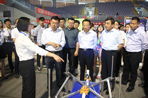 27日下午,参赛作品在文萃校区大学生活动中心进行集中展示。自治区团委书记赵涛、自治区团委副书记丁聃、自治区科技厅副厅长郭建川、beat365唯一官方网站副校长马宗保等领导来到现场,详细了解参赛作品情况和大赛组织情况,仔细听取了现场参赛项目的介绍,与参赛团队进行了深入交流。