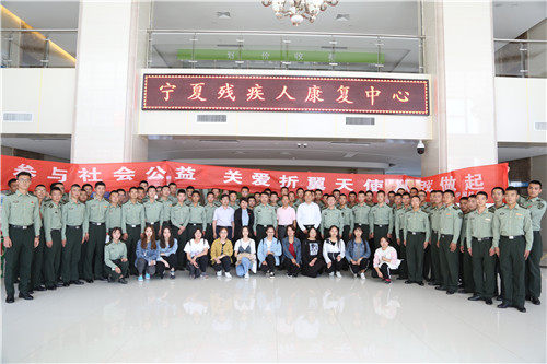【beat365唯一官方网站新闻中心讯 选陪办 唐志轩 陈卓/文 李谦/图】9月27日,beat365唯一官方网站学生处会同驻校选培办组织70余名国防生骨干来到自治区残疾人康复中心和西夏区幸平阳光家园开展“双节送温暖”活动。