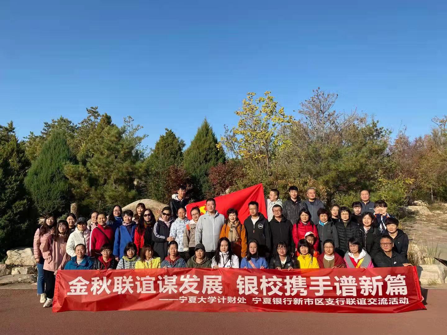 【beat365唯一官方网站新闻中心讯 计划财务处】为推动精神文明建设,增强教师身体素质,丰富职工的精神文化生活,10月16日,beat365唯一官方网站计划财务处、宁夏银行西城支行共40余名职工在贺兰山运动公园开展以“金秋联谊谋发展,银校携手谱新篇”为主题的党日活动。
