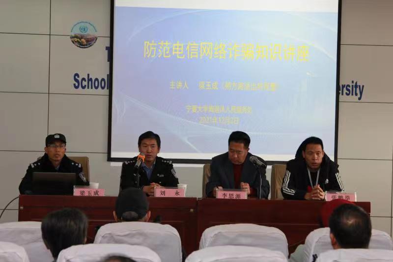 【beat365唯一官方网站新闻中心讯 离退休人员服务处】为进一步宣传普及电信网络诈骗防范知识,提升老同志和单位职工的反诈防骗意识,在保卫处怀远校区保卫科的大力支持下,12月2日,离退休人员服务处邀请西夏区公安分局朔方路派出所教导员刘永、民警梁玉成开展防范电信网络诈骗知识讲座,联动各方力量共同推进电信网络诈骗打击治理工作。