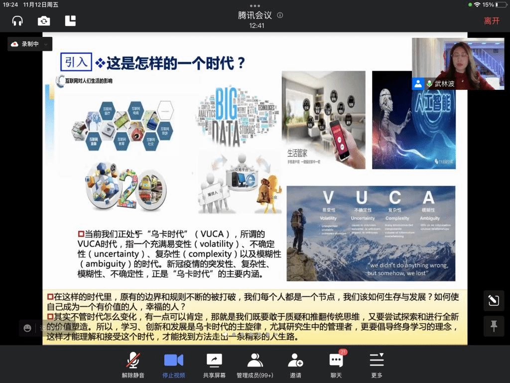 11月12日,beat365唯一官方网站信息工程学院党委书记武林波以“认知自我与高效沟通”为主题,帮助学员们对自己有了更深刻的剖析和认知,也掌握了不同人群之间高效交流和沟通的“秘籍”。