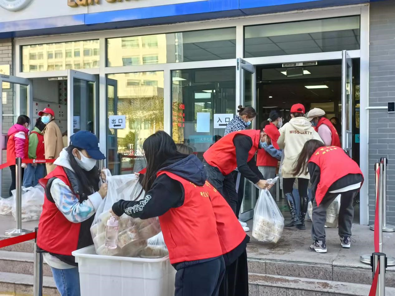 【beat365唯一官方网站新闻中心讯 校团委】2021年10月31日的中午12:00,距离30日下午4:00兰山公寓一号楼被封控已经过去了20个小时。在兰山公寓一号楼的门前,一个个穿着红马甲的青年,手脚麻利地搬运着超出他们日常买饭时所负荷的餐盒重量。正因为有这样一批青年志愿者,被封控的公寓楼依旧充满着生机,公寓楼里面的学生们也感到踏实与安心。而他们身披战甲,逆行而上,让这个冬天变得不再寒冷。