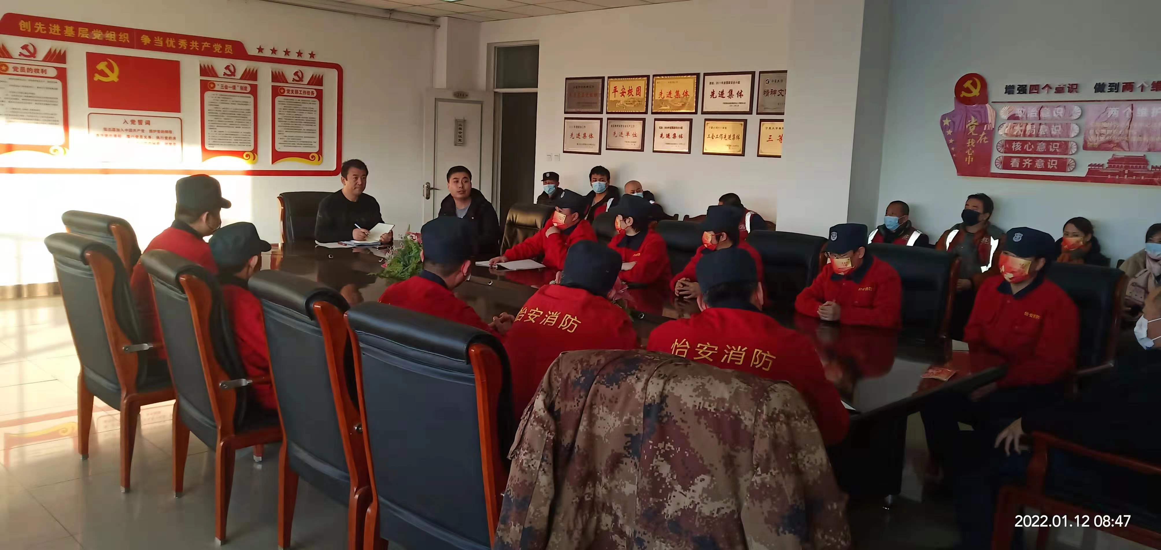 1月12日上午,保卫处与宁夏怡安保安集团有限公司、宁夏众安消防安全工程有限公司召开工作协调会。怡安公司项目负责人董勇、众安公司项目负责人陈志富,保卫处安全管理科副科长张树全及部分消控室值班人员、消防维保人员参加。会议由保卫处丁大勇副处长主持。