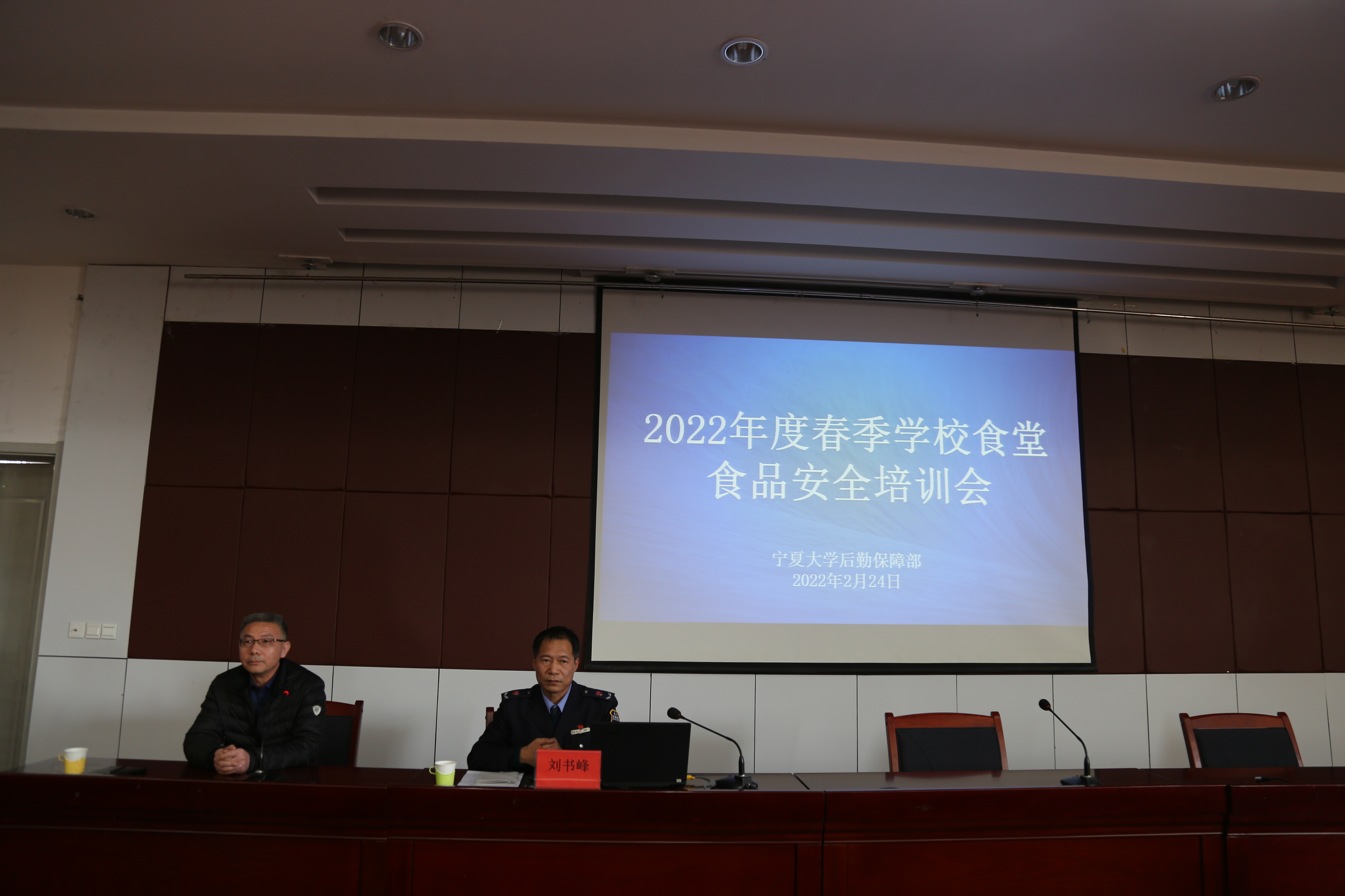 【beat365唯一官方网站新闻中心讯 后勤保障部】 为进一步加强beat365官网食堂食品安全管理,提高从业人员食品安全意识,保证全体师生的饮食健康和安全,2月24日,后勤保障部在怀远校区怀远报告厅开展2022年度春季学校食堂食品安全培训会,会议邀请了西夏区分局朔方路市场监管所所长刘书峰做专题讲座,会议由后勤保障部副部长李文柱主持。