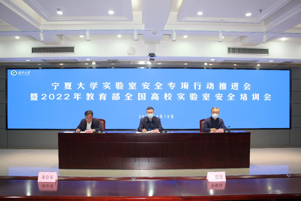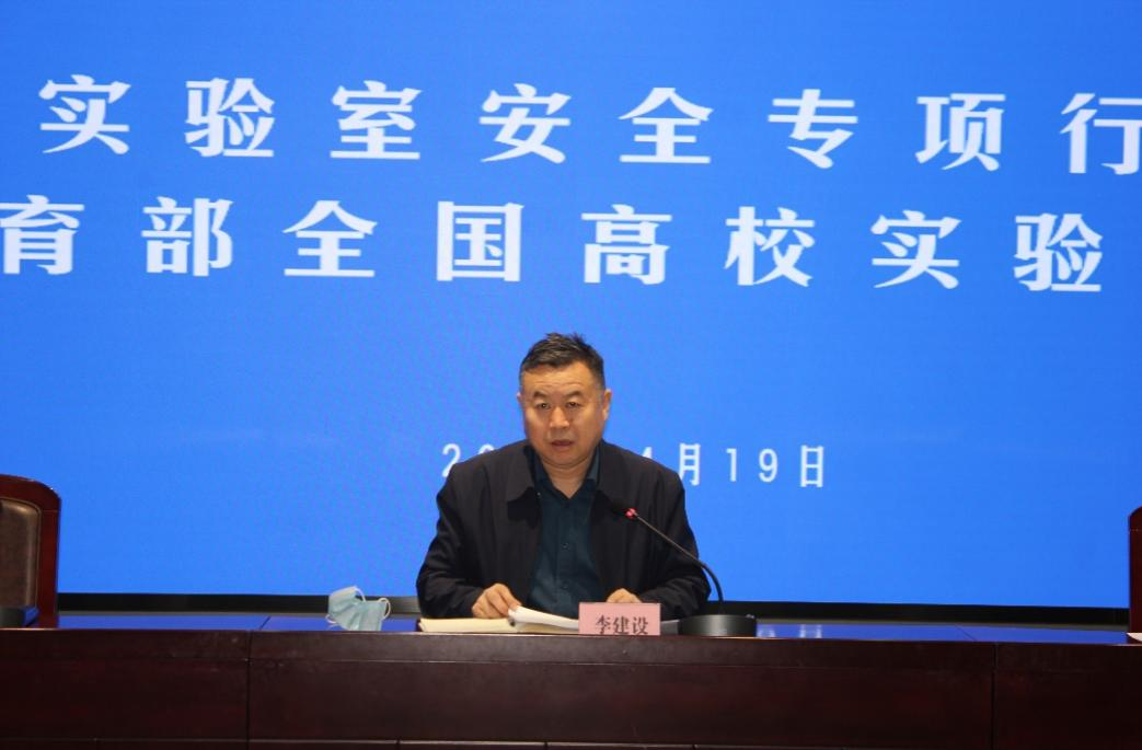 【beat365唯一官方网站新闻中心讯 资产与实验室管理处】为落实教育部、自治区教育厅关于高校实验室安全工作相关内容,推动实验室安全专项行动走深走实,4月19日,校党委常委、副校长李建设在德勤楼六楼会议室主持召开beat365唯一官方网站实验室安全专项行动推进会,并参加2022年教育部全国高校实验室安全培训会。