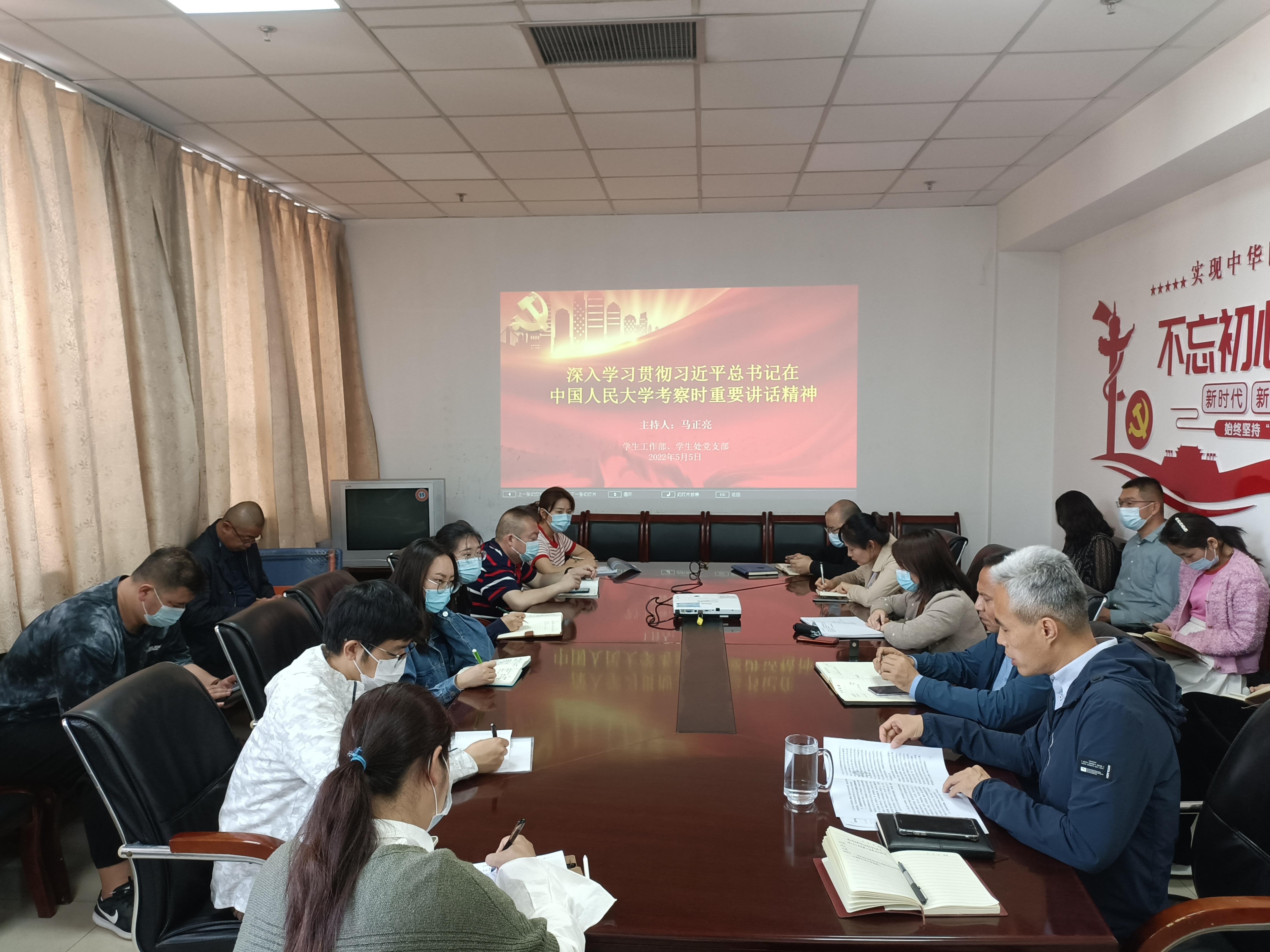学生工作部、学生处党支部全体教职工表示,将牢记习近平总书记的教诲,坚定党对教育事业的领导地位,筑牢信仰根基,锤炼政治思想,努力在教育教学、管理服务、学生健康成长中,把制度创新与文化引领、思想沁润与心理培育、扶困帮扶与就业实践有机融合为一体,促进学生工作高质量发展。