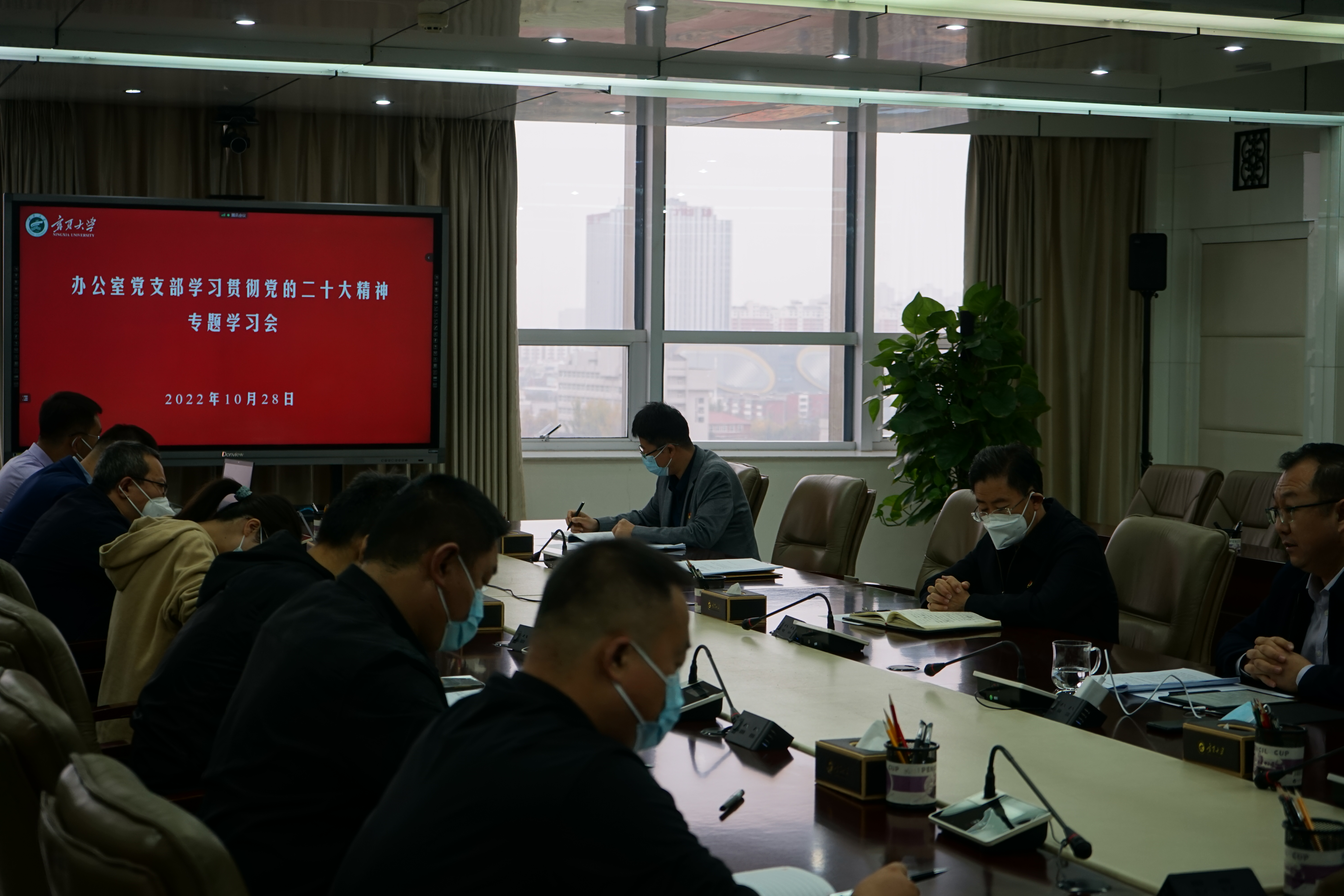 【beat365唯一官方网站新闻中心讯 办公室】10月28日,办公室党支部召开党的二十大精神专题学习会,校党委书记李星参加支部学习活动,分享学习体会,与办公室教工党员进行交流研讨,办公室党支部书记冯学文主持学习会,办公室全体成员通过线上线下的方式参加会议。