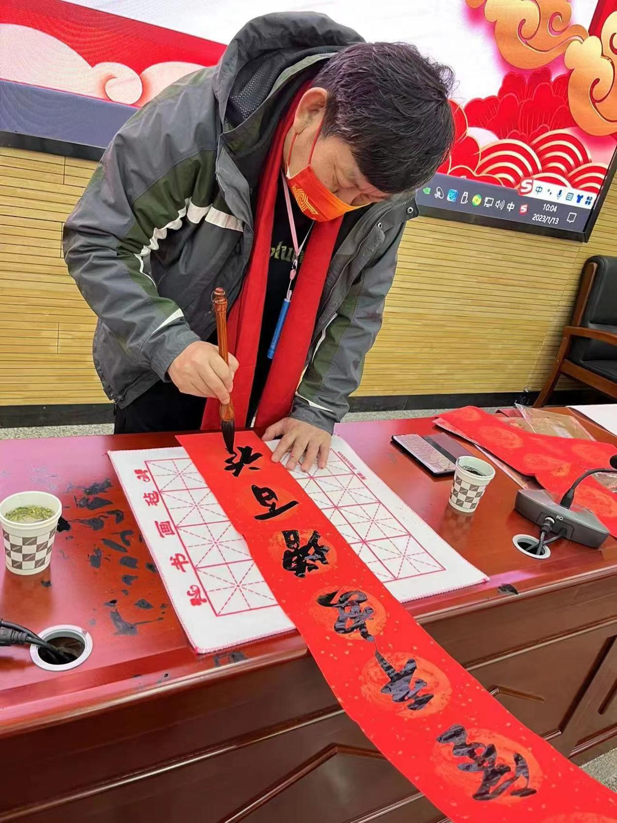 1月13日,美术学院党委副书记马树华参加了自治区春节"送万福 进万家"书法公益活动并为教职工撰写、赠送春联和福字60多份。