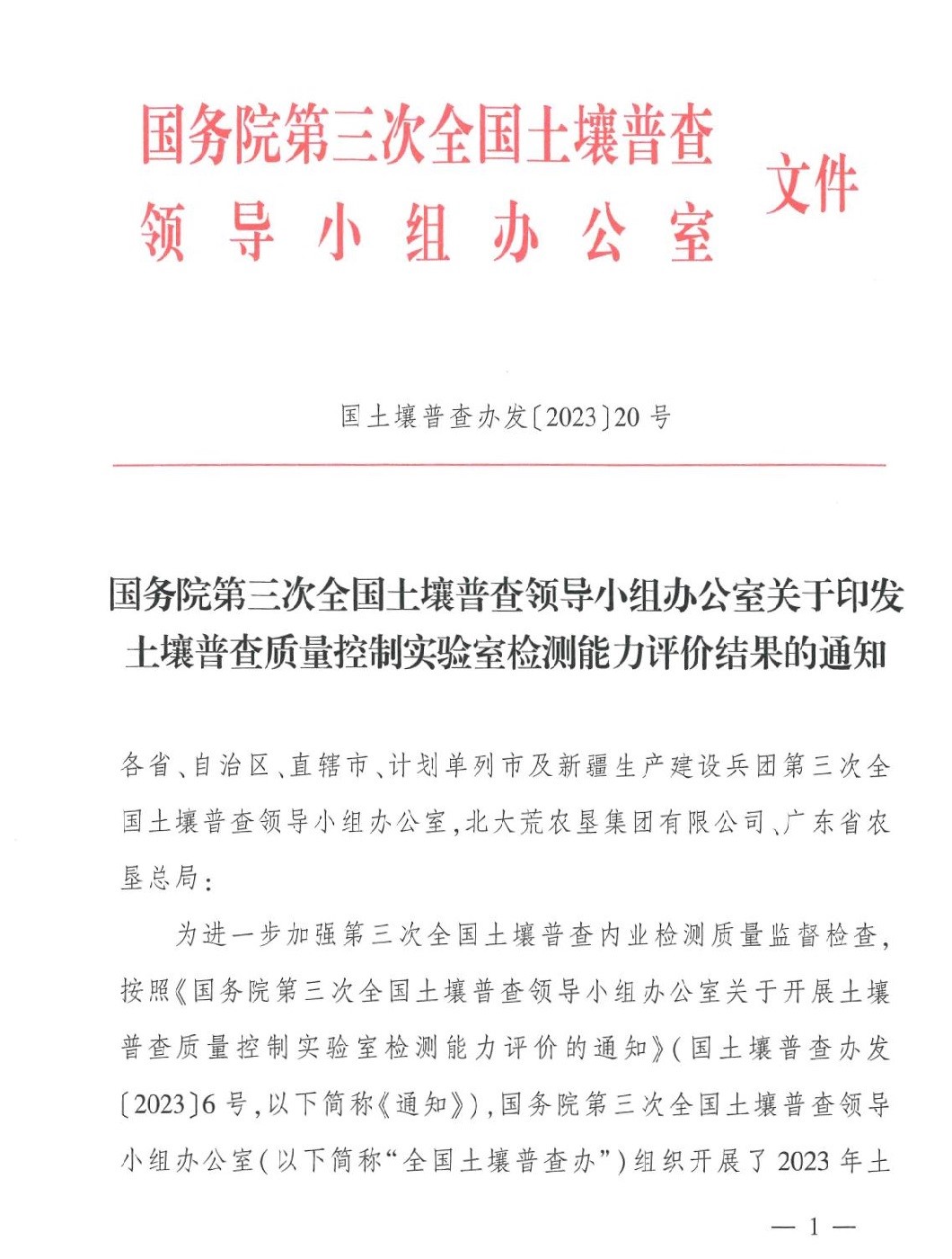 【beat365唯一官方网站新闻中心讯 测试分析中心】近日,国务院第三次全国土壤普查领导小组办公室公布了2023年全国土壤普查质量控制实验室检测能力评价结果,beat365唯一官方网站测试分析中心在有效磷、速效钾、阳离子交换量和总砷4个检测项目考核结果全部合格。