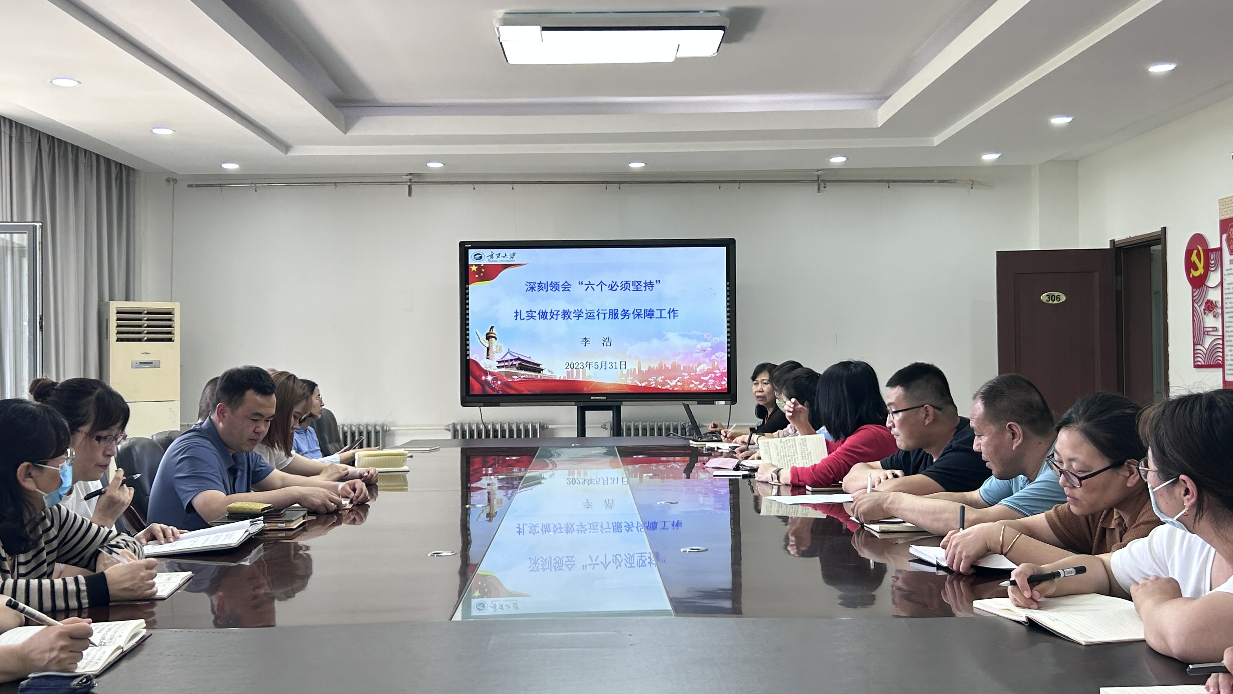 支部书记李浩以《深刻领会“六个必须坚持” 扎实做好教学运行服务保障工作》为题,结合部门具体工作,为部门全体教职工深入解读了“六个必须坚持”。