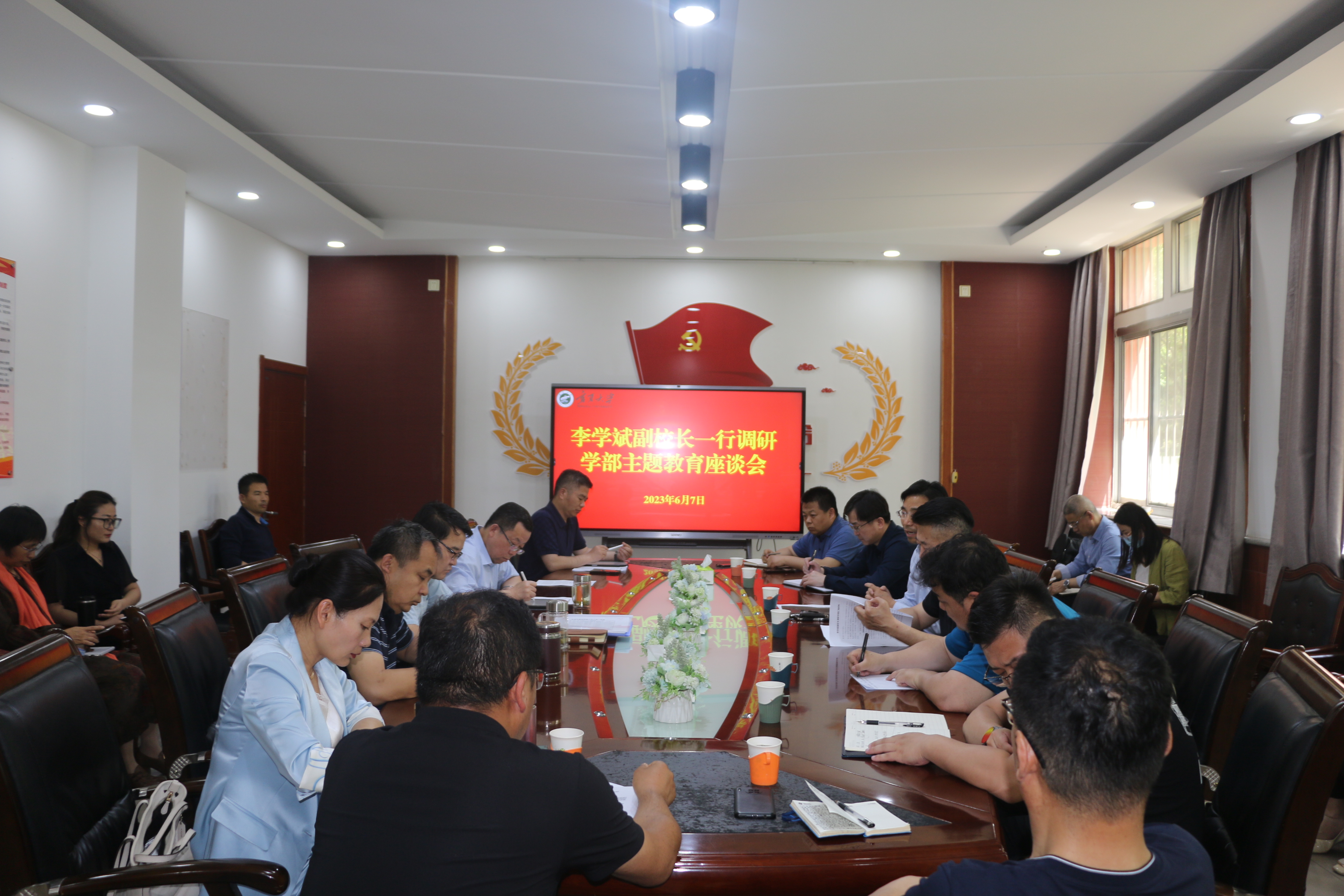 【beat365唯一官方网站新闻中心讯 生命与食品学部】为进一步通过调研破解改革发展实践难题,切实将主题教育落实到学校高质量发展的实处,6月8日,校党委常委、副校长李学斌一行调研指导生命与食品学部主题教育工作,学部及学院领导、学部各办公室负责人参加调研。