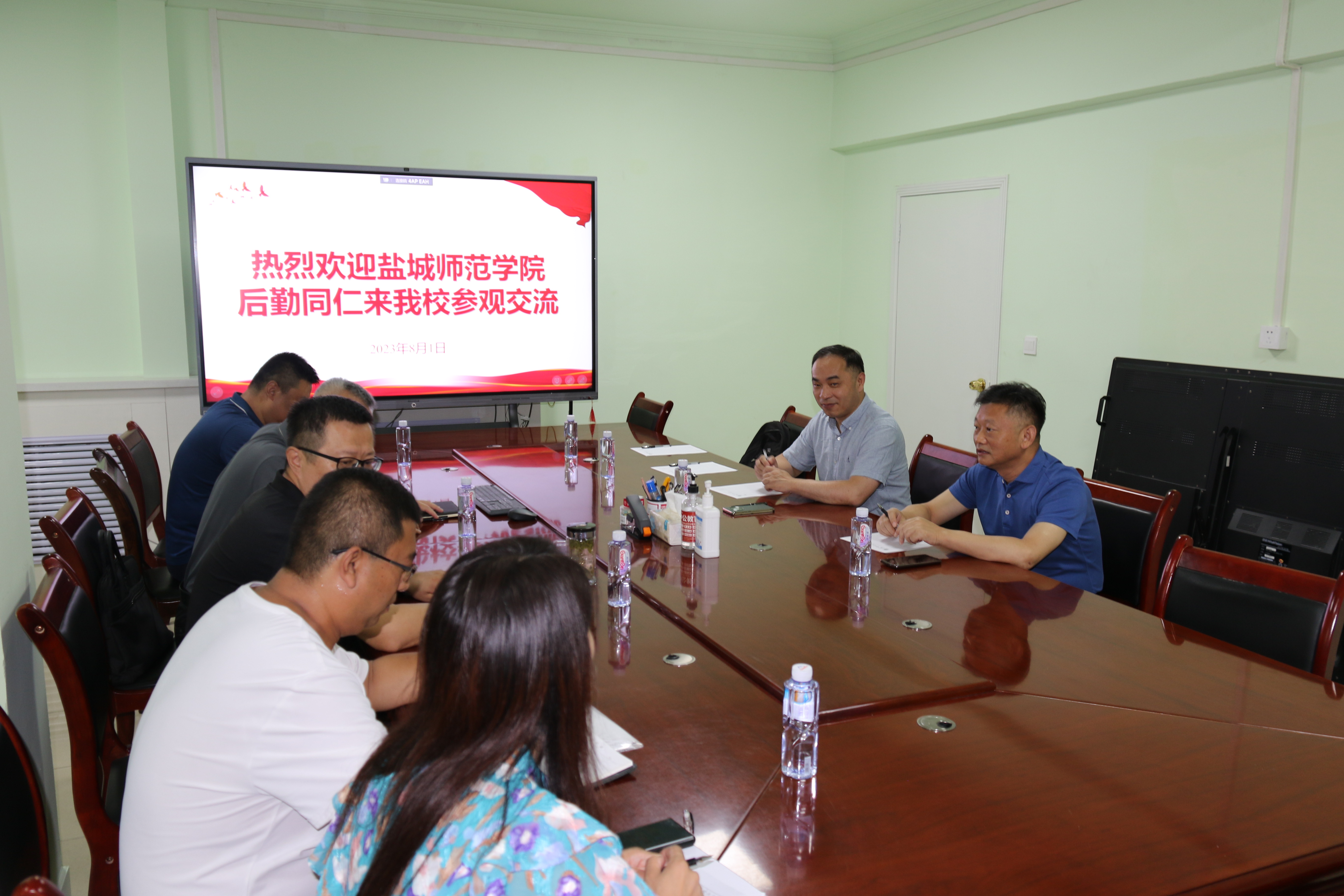 后勤保障部书记王智勇对盐城师范学院的同仁到访表示诚挚地欢迎,并介绍了beat365官网后勤的基本情况。蔡志宏介绍了后勤基建处、后勤保障集团的基本情况和来访目的。
