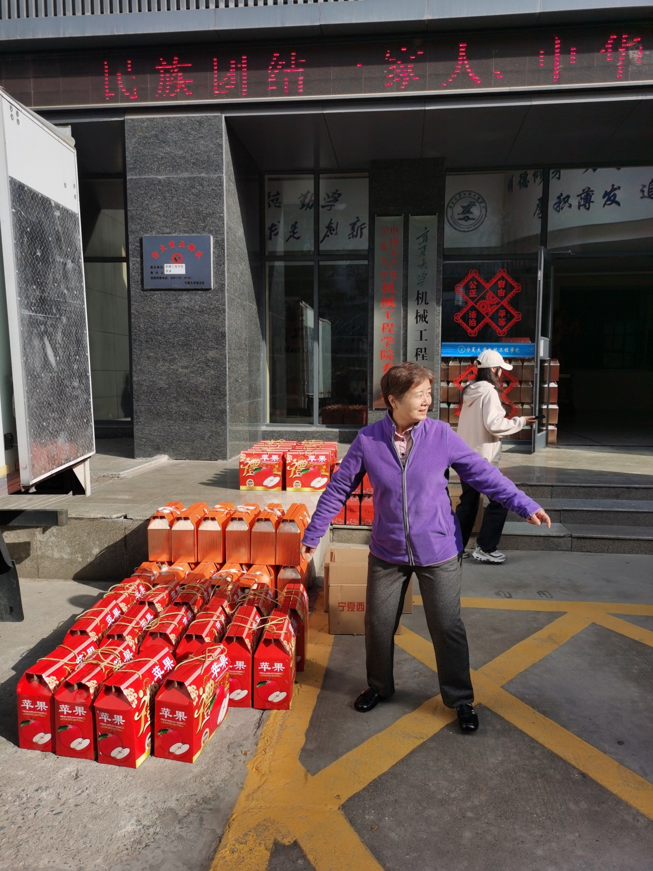 9月25日清晨,五辆大货车满载着慰问品驶入各个校区,校工会主席孙建军深入一线,组织、带领工会干部发放慰问品。各单位的工会工作人员细心清点核对后,将慰问品一一发放到教职工手中。