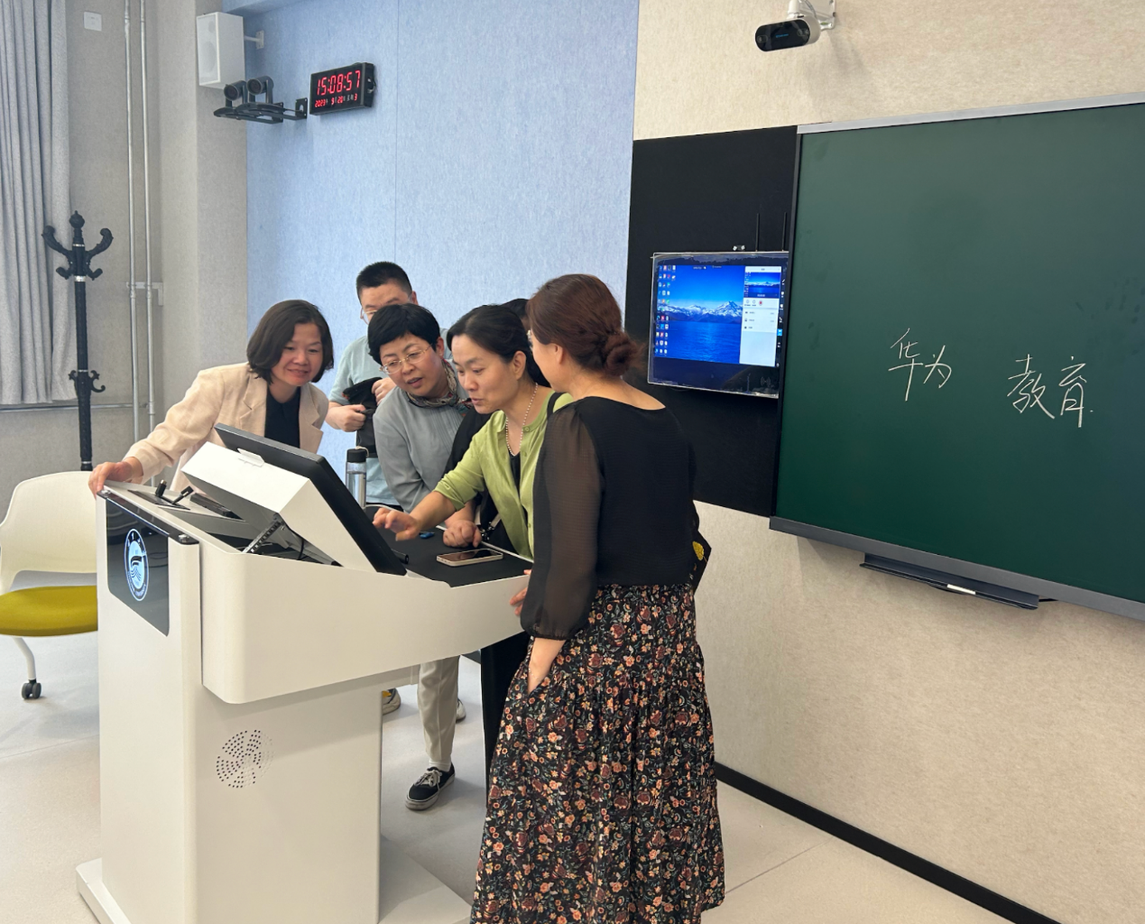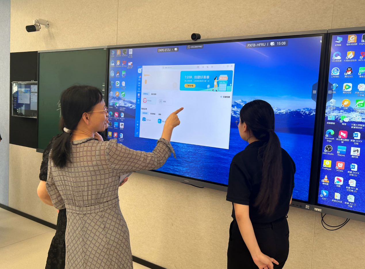 培训会上,华为技术公司对教师进行现场指导,主要讲解了智慧教室基础教学设备使用方法及基于welink+uclass的教学管理工具应用等内容。同时,就使用过程中遇到的问题进行了现场交流和深入探讨。
