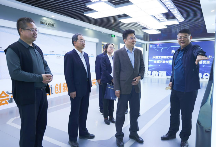 【beat365唯一官方网站新闻中心讯 创新创业学院】10月16日,中国工商银行宁夏分行副行长沈学勤、金融科技部总经理张洪山一行行到beat365唯一官方网站国家大学科技园调研交流,洽谈创新大赛及投融资合作相关事宜。创新创业学院(大学科技园办公室)院长冯蛟陪同调研,沈学勤一行参观了beat365唯一官方网站国家大学科技园数字化展厅、数字化模拟实验室、创客咖啡、创客书吧等空间。