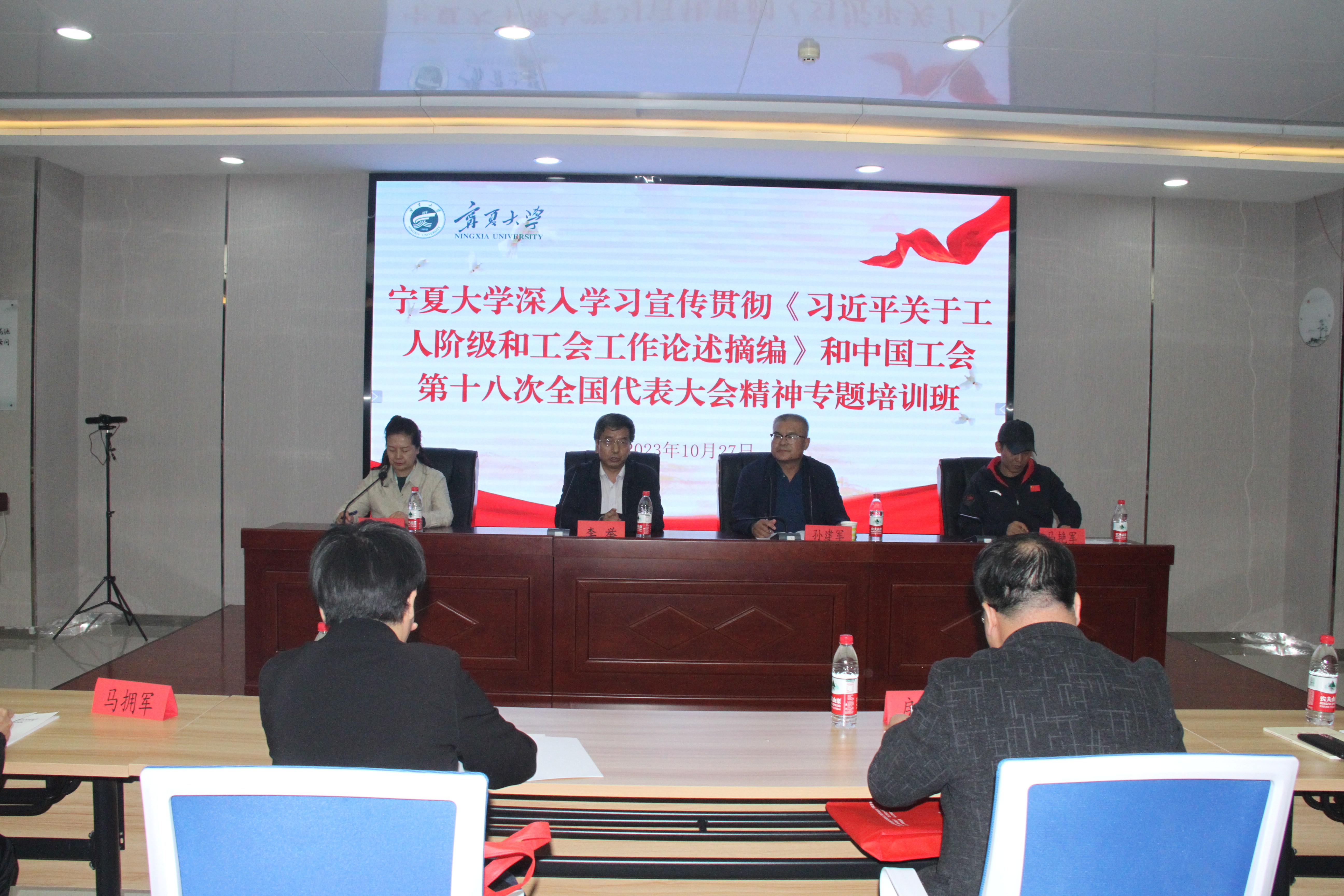 【beat365唯一官方网站新闻中心讯 工会】10月27日至29日,校工会在中卫校区举办深入学习宣传贯彻《习近平关于工人阶级和工会工作论述摘编》和中国工会十八大会议精神培训班,校工会副主席王红枫主持培训会。