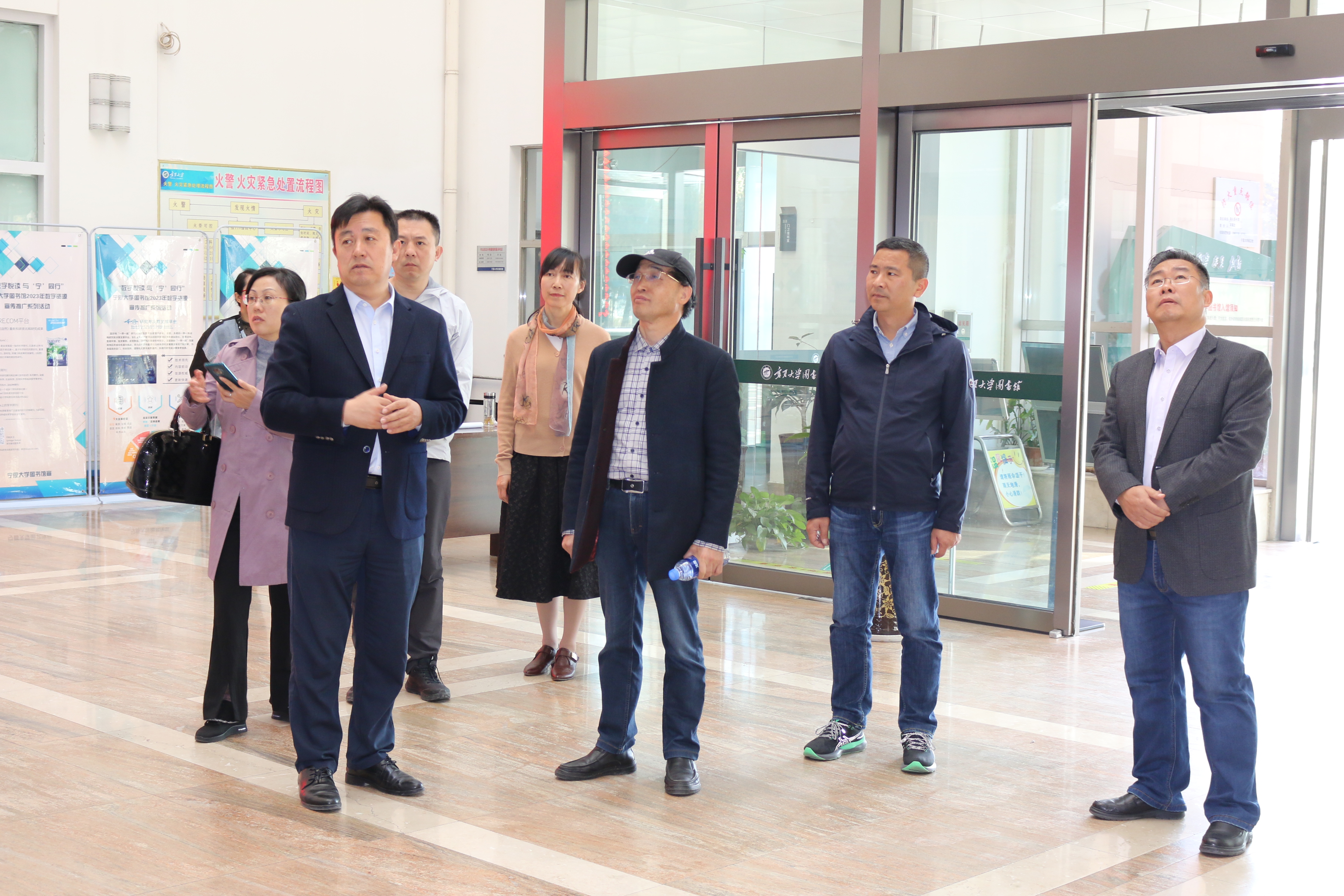李振中一行先到文萃图书馆与逸夫图书馆参观,实地了解图书馆环境、资源、服务等总体情况。