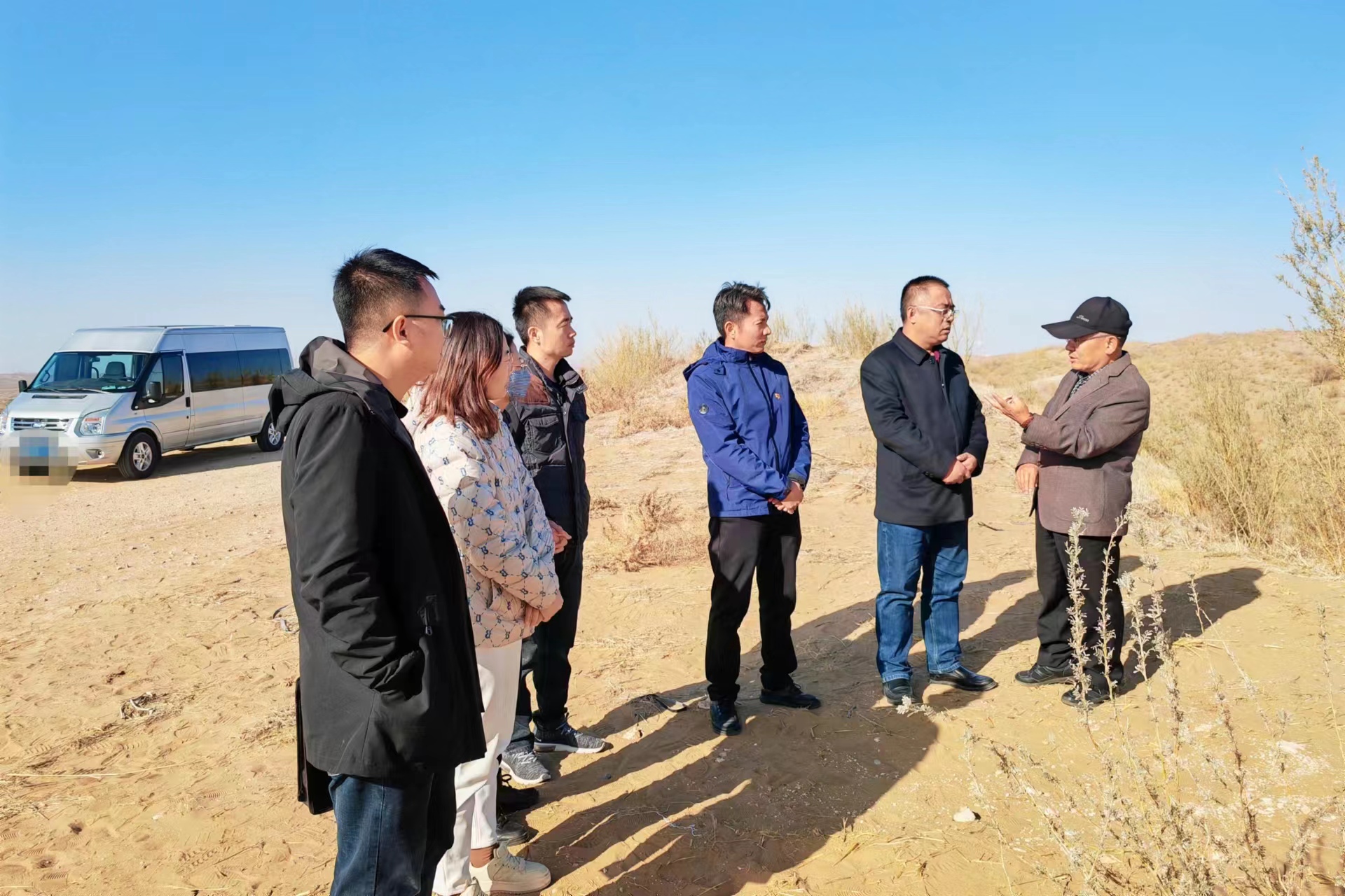 在白芨滩国家级自然保护区管理局副局长马兴国的带领下,大家了解了白芨滩林场防沙治沙的艰辛历程和丰硕成果,深刻领会了白芨滩林场干部职工践行“两个先行区、两个示范区”的奋斗精神。通过参观新旧对比区,支部成员们亲眼领略沙梁变青山、沙漠变绿洲的盛景,深刻感受到了白芨滩人艰难治沙70载与沙漠抗争的决心勇气和勇于创新的智慧手段。