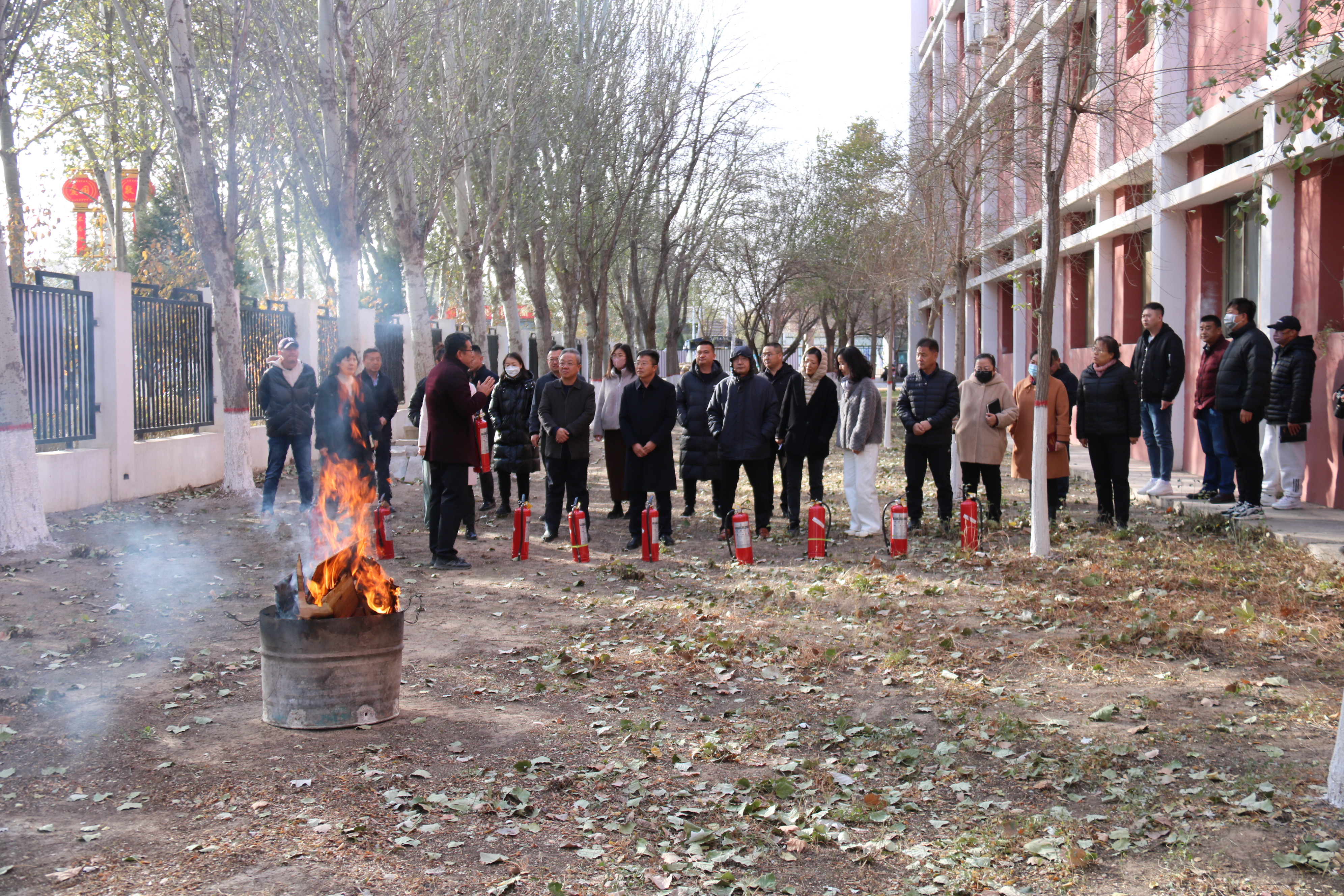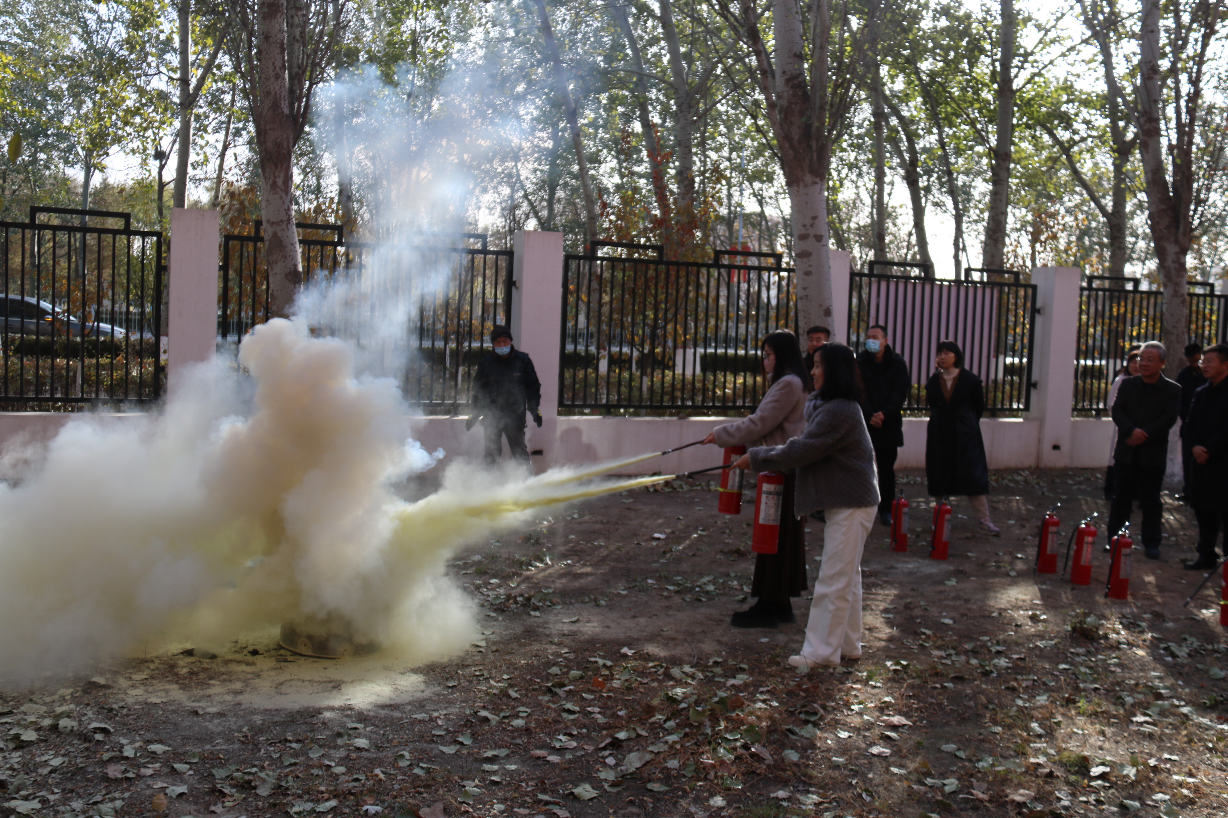学习会后,全体党员集体参观了学校消防主题公园,学习了消防安全知识;在致远楼前,进行了消防安全演练,详细了解灭火器的使用方法。