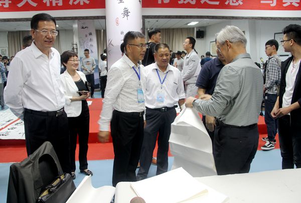自治区原人大常委会副主任余今晓、中国书法美术创作中心终身荣誉教授、区文史馆馆长曾玉强先生、银川市政协书画院院长助理尤银春一行五名我区著名书画专家、宁夏书画函授专修学院名誉院长丁生俊老师,学生处、团委、老干部处等相关领导以及学校爱好书画的教师、学生一百多人参加了揭牌仪式,校党委副书记王宏伟莅临现场参加了书法活动。