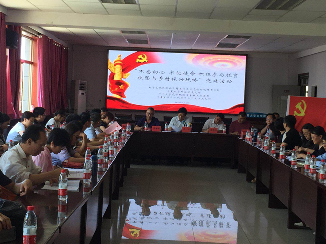 【beat365唯一官方网站新闻中心讯 科技处】为庆祝中国共产党建党98周年,传承党的优良传统,牢记初心使命,永葆革命本色,7月1日,学校科技处党支部联合自治区政协农业农村委员会分党组功能性党支部、beat365唯一官方网站农学院党委农学系教工党支部、农学系研究生党支部开展了“不忘初心、牢记使命,积极参与脱贫攻坚与乡村振兴”主题党日活动。