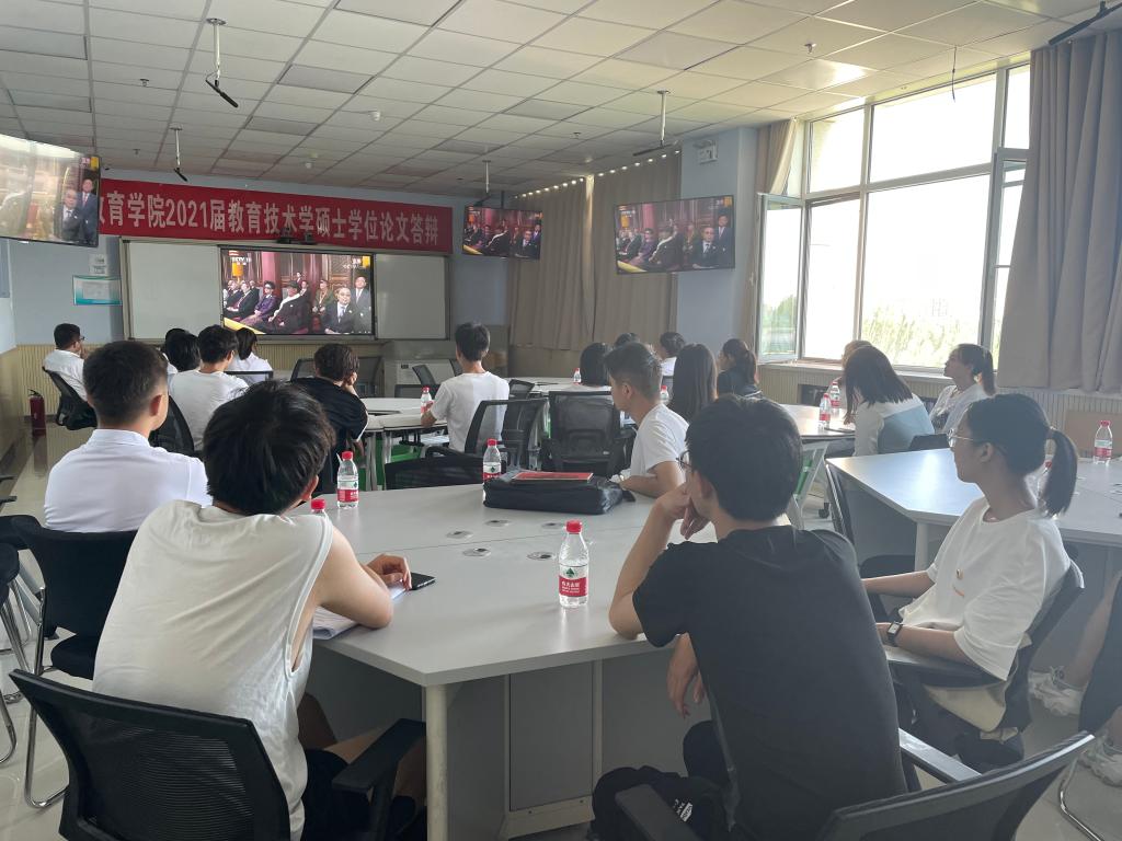观看过程中,大家认真聆听并记录习近平总书记重要讲话内容,回望建党百年来取得的伟大成就,倍感振奋。观看结束后,师生们互相分享交流心得感悟。