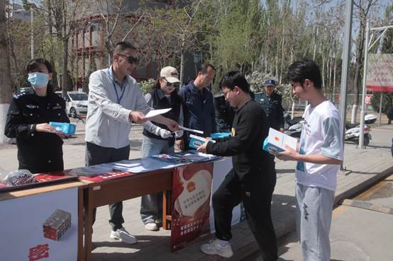 活动现场通过发放《中华人民共和国国家安全法》《中华人民共和国反恐怖主义法》《反分裂国家法》宣传手册、现场解答国家安全问题等方式,紧紧围绕“总体国家安全观•创新引领10周年”这一主题,给师生解答相关知识,吸引了不少过往师生驻足观看。