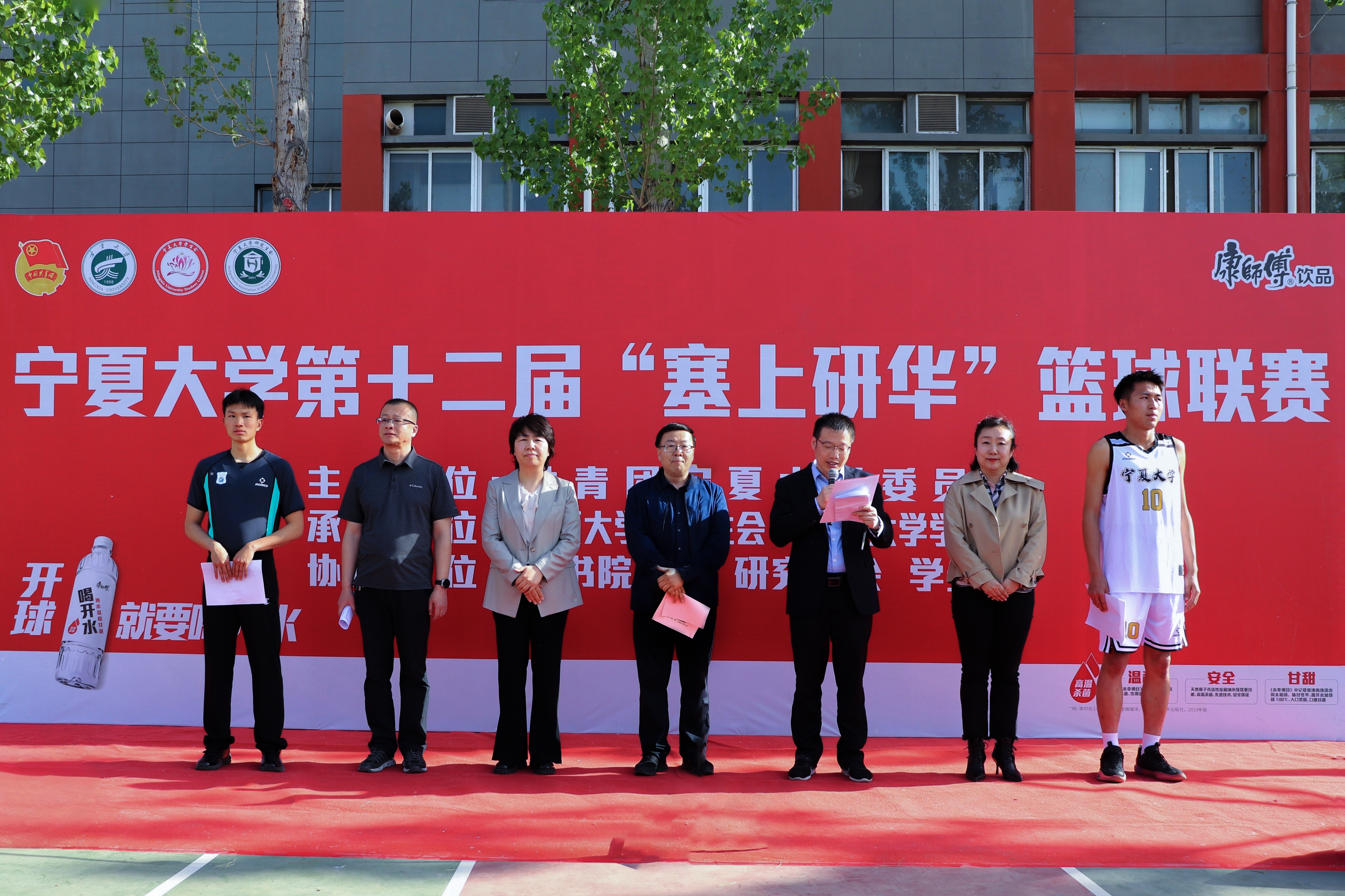 【beat365唯一官方网站新闻中心讯 校团委】为丰富校园文化生活,激发学生运动兴趣,促进学生身心健康发展,营造良好的校园运动氛围,4月17日,由校团委主办,校研究生会、学生会承办的beat365唯一官方网站第十二届“塞上研华”篮球联赛开幕式在文萃校区篮球场举行。校党委常委、副校长、体委主任黄河出席并宣布开幕,校团委书记肖功国主持开幕式。