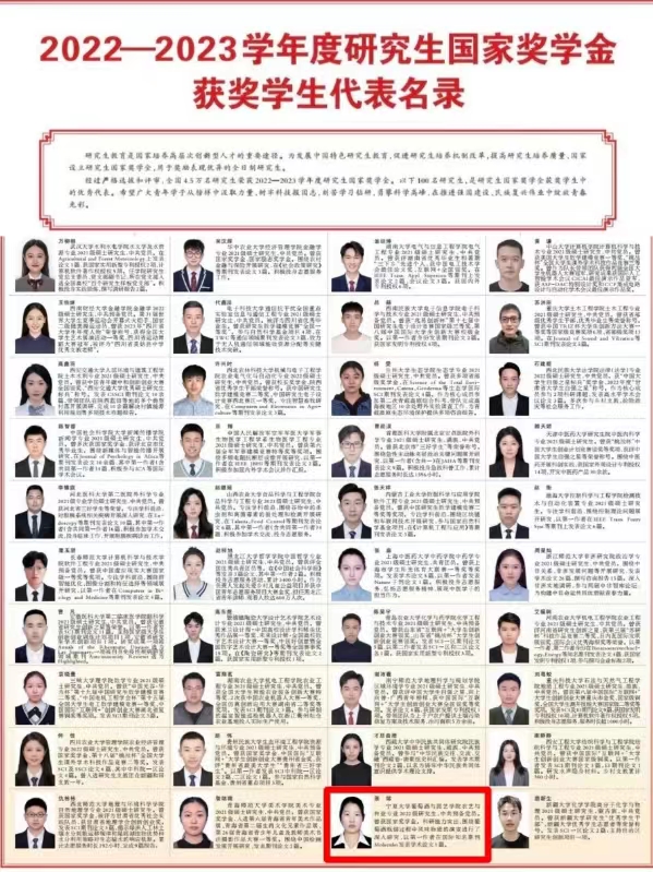 据悉,前期经过严格选拔和评审,全国4.5万名优秀研究生荣获2022—2023学年度研究生国家奖学金、6万名优秀本专科学生荣获2022—2023学年度本专科生国家奖学金、2万名优秀中职学生荣获2022—2023学年度中等职业教育国家奖学金。近日《人民日报》用六个整版刊登了该学年度的100名研究生国家奖学金获奖学生优秀代表、100名本专科生国家奖学金获奖学生优秀代表、100名中等职业教育国家奖学金获奖学生优秀代表名录。