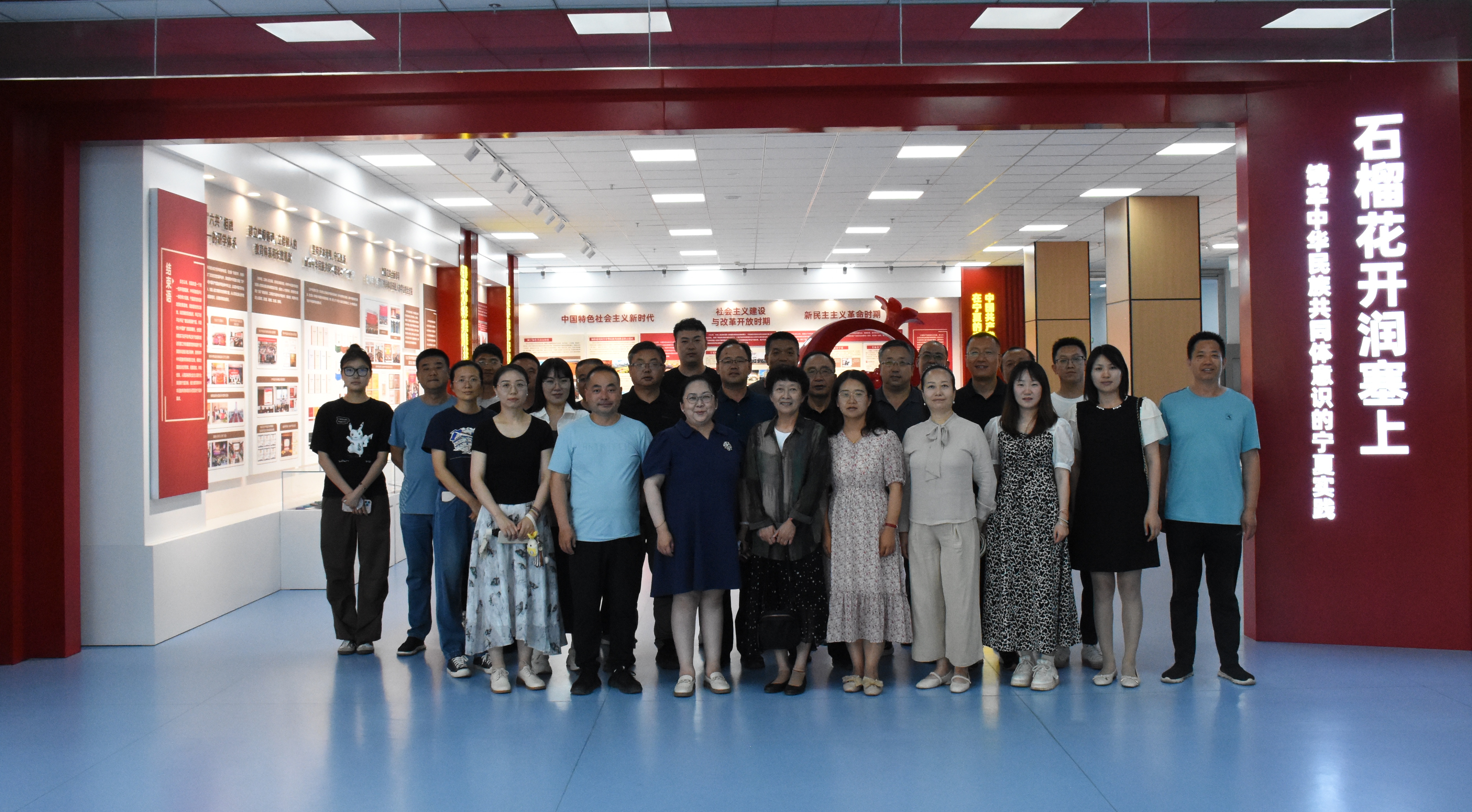 全体党员在笃行楼(未来教室)一楼参观了学校“石榴花开润塞上——铸牢中华民族共同体意识的宁夏实践”展览,民族与历史学院(中华民族共同体研究院)副院长于光建从中华民族交往交流交融的宁夏史话、铸牢中华民族共同体意识的宁夏实践、习近平总书记对宁夏的亲切关怀、铸牢中华民族共同体意识的beat365唯一官方网站实践四个部分,介绍了从古至今宁夏各民族“三交”的历史与现实。