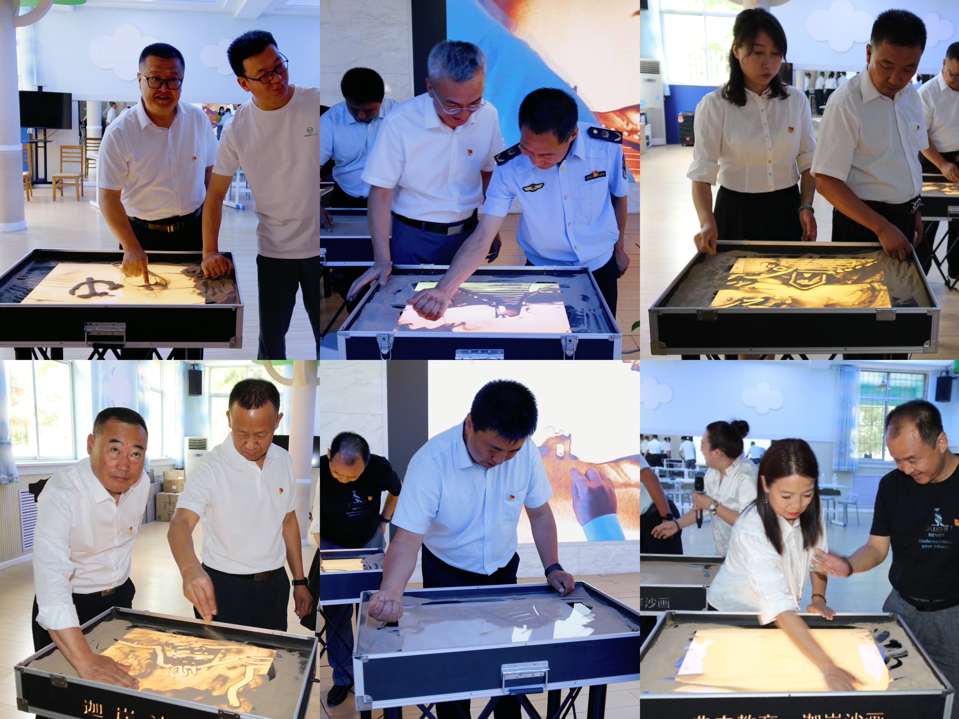活动现场,校友代表杨蕊讲解了沙画基本画法,党员们手持细沙,以沙为笔,挥沙沟边,精心绘制着党旗与长城的图案。细沙在指尖流淌,形成了一幅幅生动而庄重的画面。通过亲手绘制沙画,党员们不仅感受到了沙画的魅力,更在无形中加深了对党的理解和热爱。