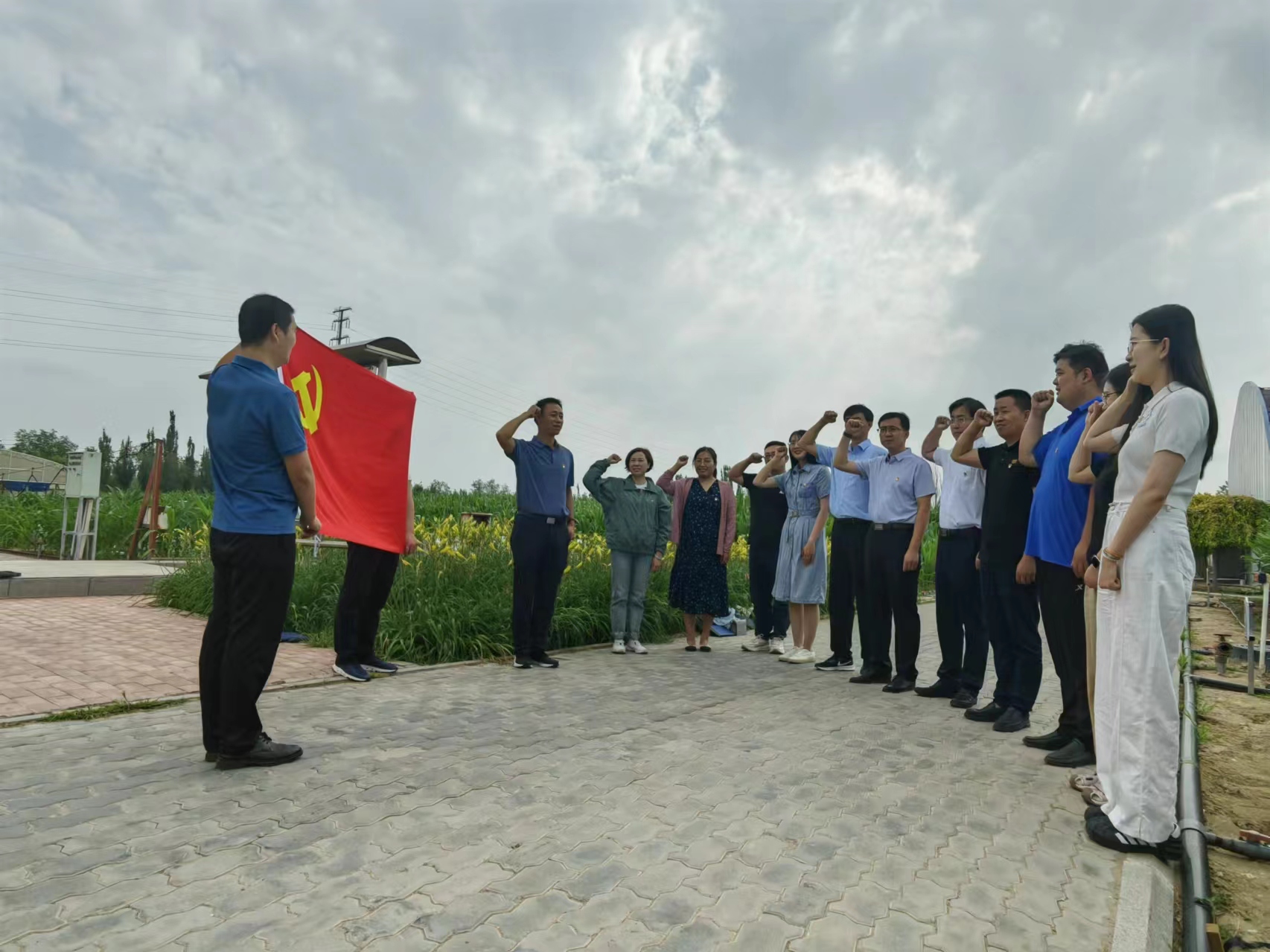 活动在科研大地上拉开序幕,全体党员面向党旗庄严宣誓,重温入党誓词,回顾初心使命,坚定对党的忠诚与信仰。