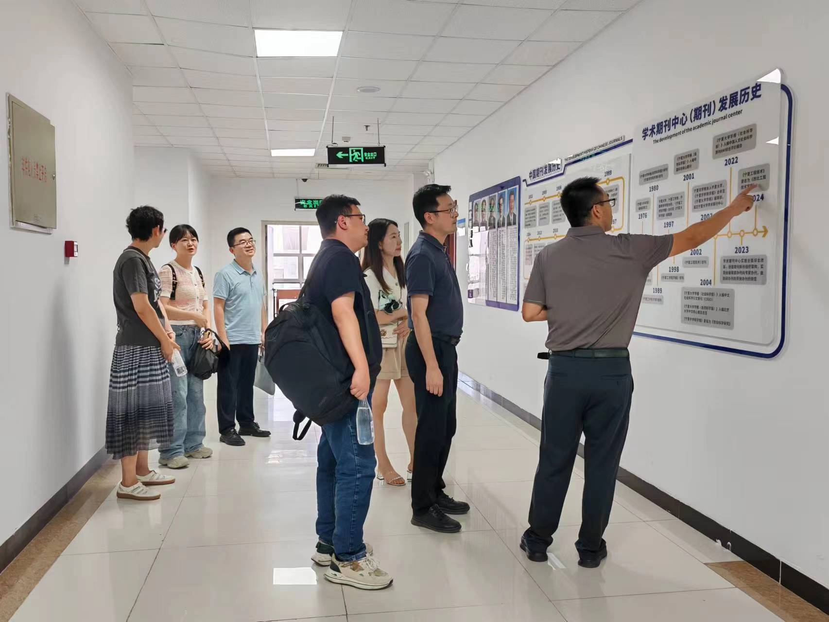 会前,马海龙、钱容德及中心工作人员陪同林正雨一行参观了中心文化墙,介绍了中心文化理念和发展历程及编辑团队等情况。