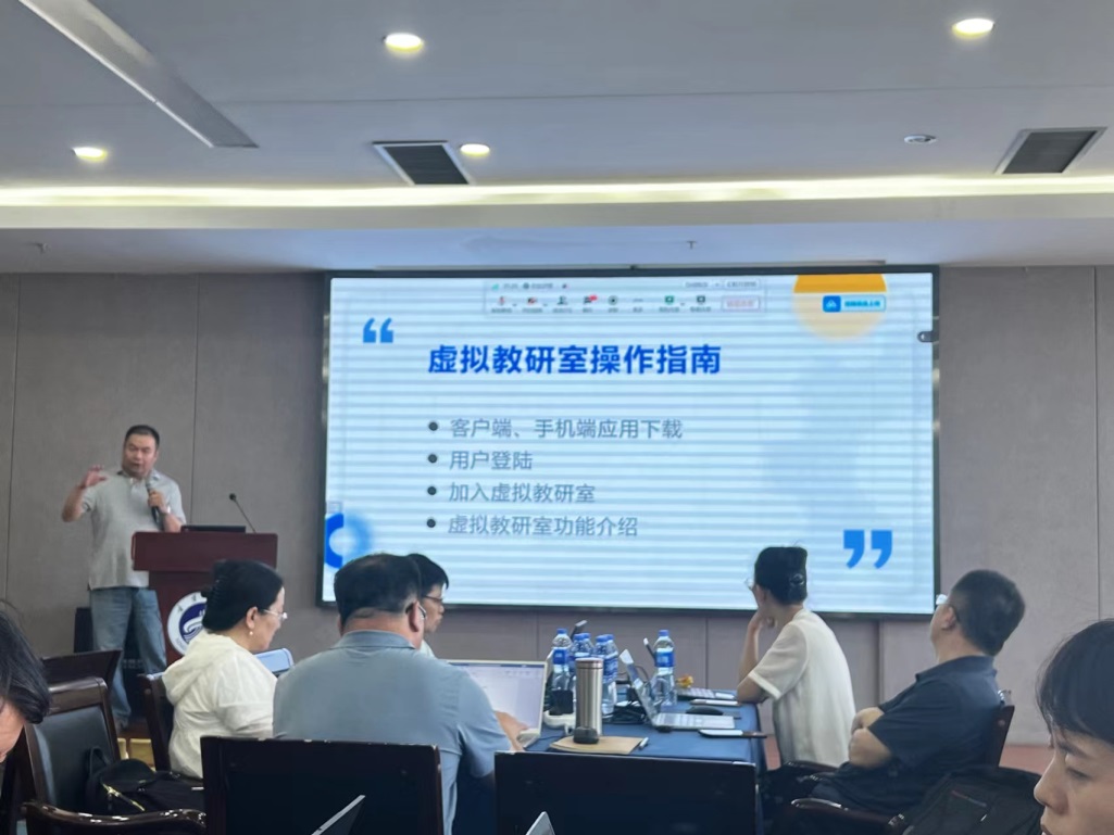 培训会特邀了教育部重点领域教学资源建设项目管理办公室许长江深入浅出地讲解了虚拟教研室的建设背景、虚拟教研室建设在线服务平台应用;知识图谱的基本概念、构建原理及其在教学领域的应用价值。详细演示了虚拟教研室和知识图谱的构建流程、工具使用以及数据分析方法,使参会教师对知识图谱有了更为直观和深入的认识。