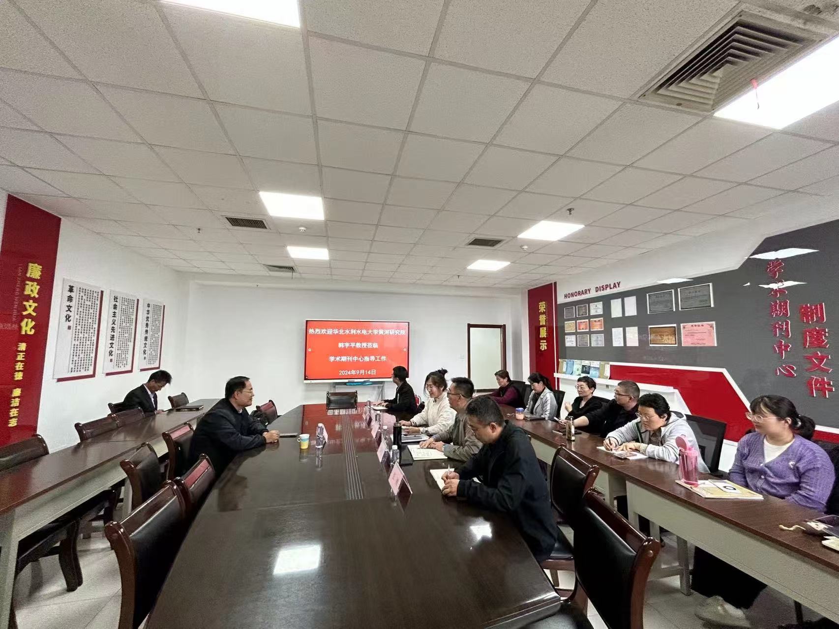【beat365唯一官方网站新闻中心讯 学术期刊中心】9月14日,华北水利水电大学黄河研究院博士生导师、beat365唯一官方网站河南校友会会长韩宇平教授与学术期刊中心全体工作人员座谈交流,共商学术期刊高质量发展。座谈会由中心直属党支部书记、主任奥海玮主持。中心全体工作人员参会。