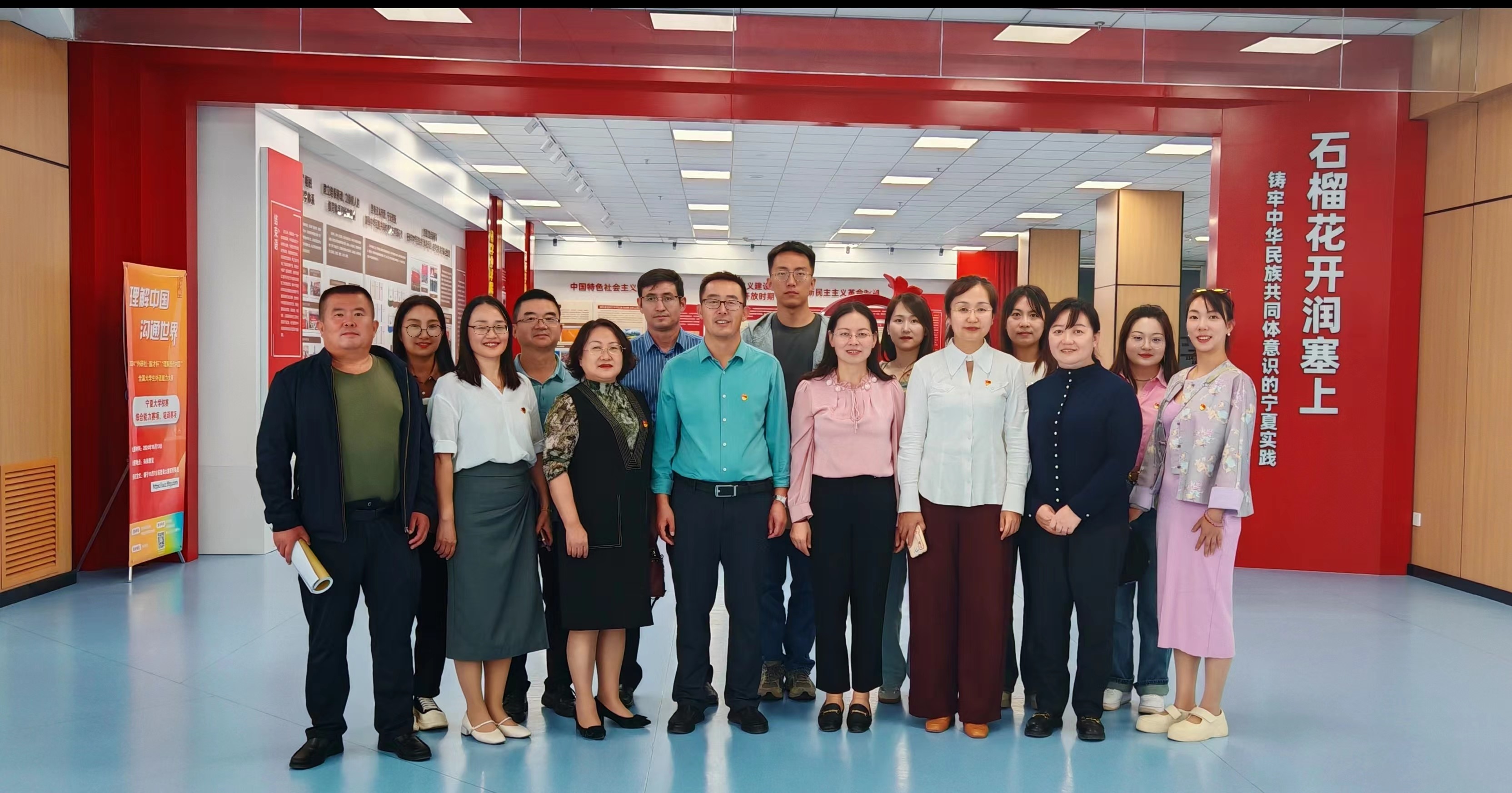 座谈会后,全体人员在学校笃行楼展厅参观“石榴花开润塞上——铸牢中华民族共同体意识的宁夏实践”图片展览。