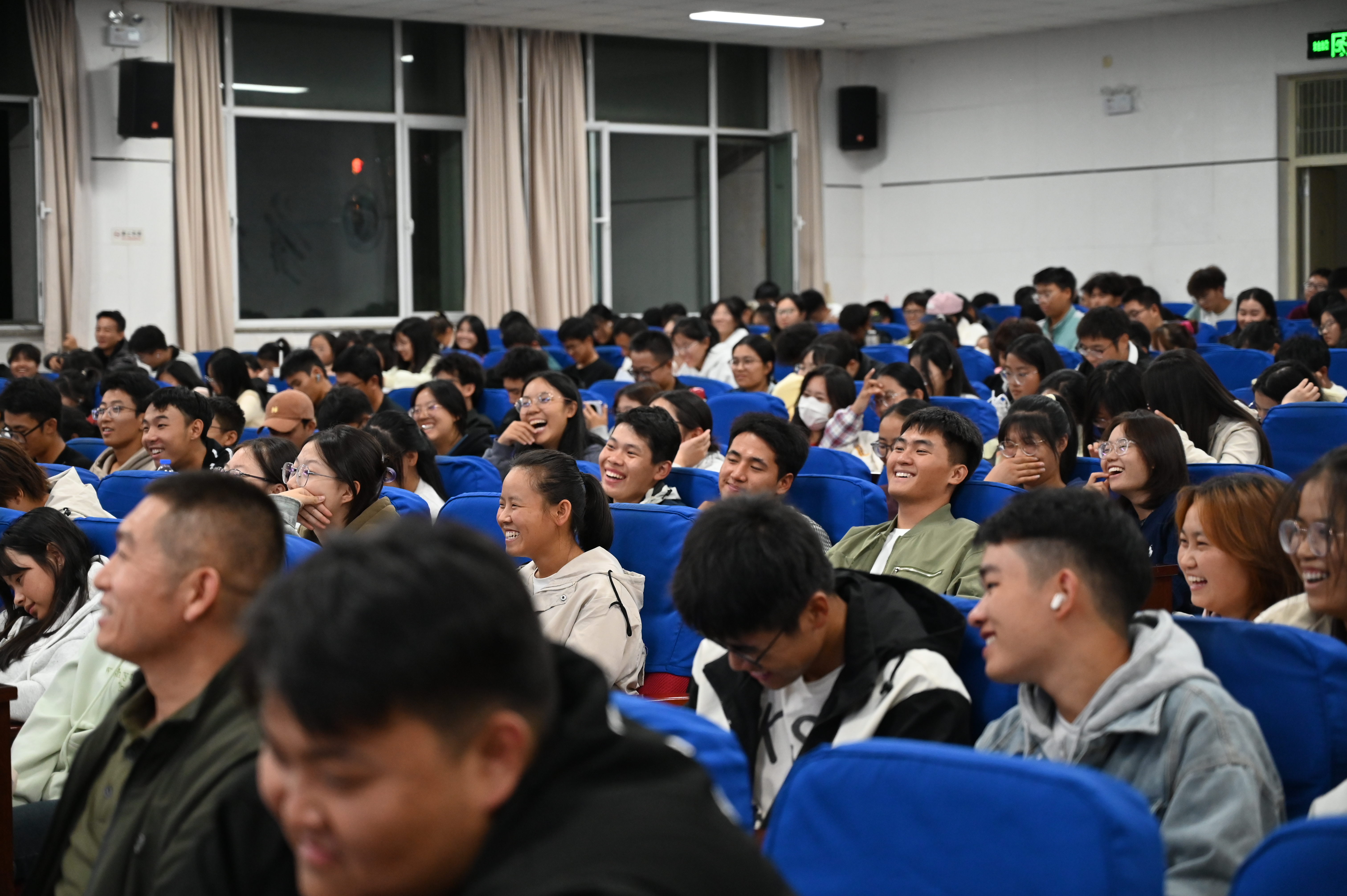 杨亚雄围绕“感恩•励志•成才”主题,用生动的事例、真挚的语言、丰富的情感,从坚持勤学苦练与常怀感恩之心、坚持个人修炼与拥抱时代变化、坚持长途跋涉与品味生命意义等三方面声情并茂、风趣幽默地讲解了贴近学生实际的典型案例,引导广大学生思考自身的成长和未来发展,深情演绎、感人至深,引起了同学们感恩励志的情感共鸣,营造了积极向上、轻松和谐、充满活力的浓厚氛围,有效激发了当代大学生奋发向上、砥砺前行的责任感和使命感,现场反响热烈。