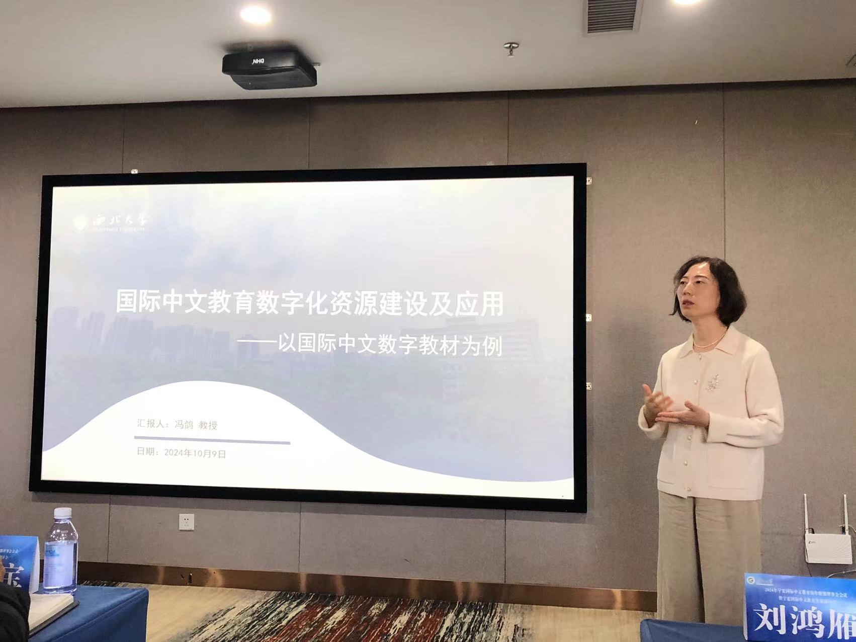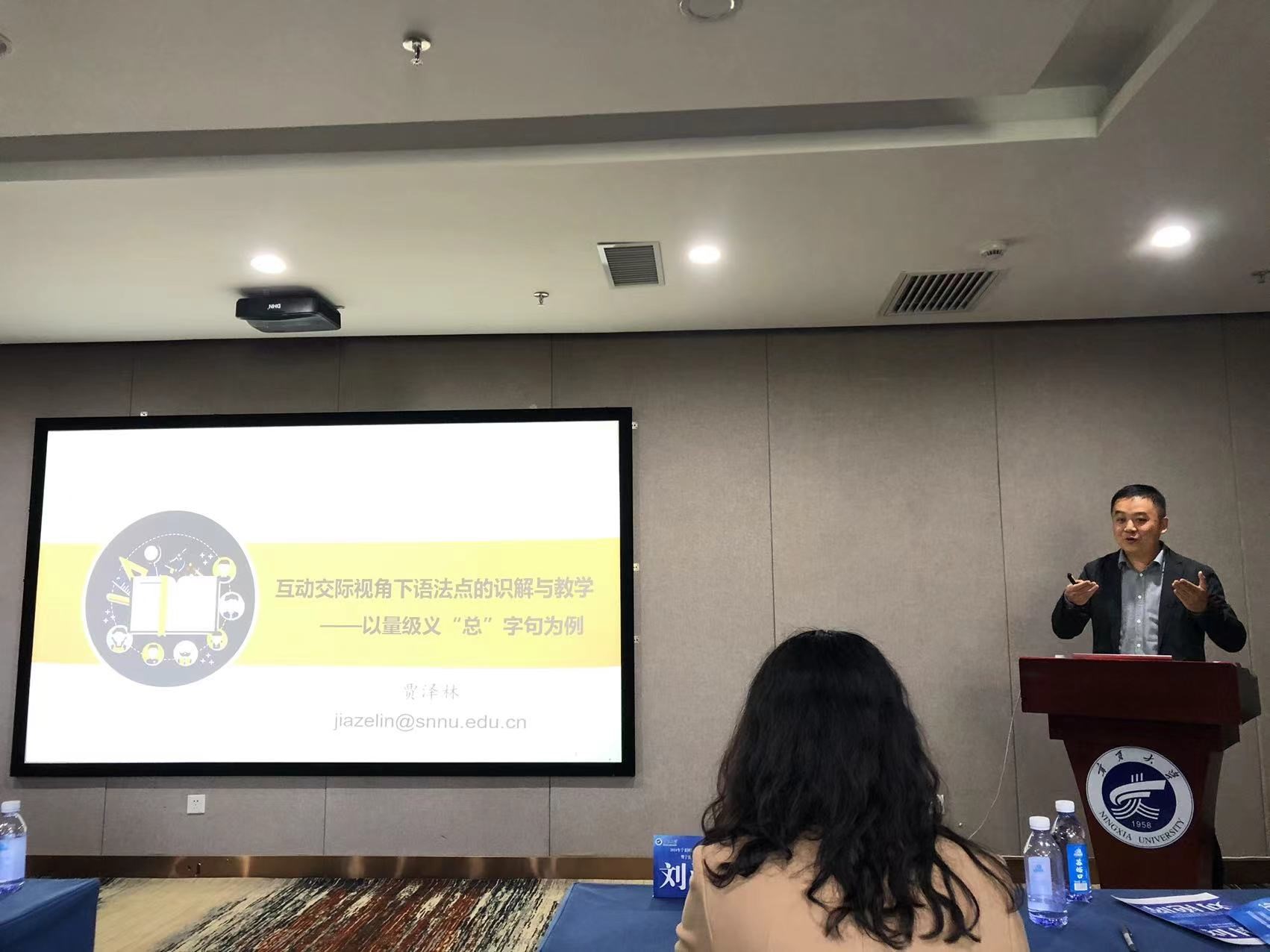 在下午的宁夏国际中文教育发展研讨会上,冯鸽教授和贾泽林副院长分别为师生们带来了题为《国际中文教育数字化资源及应用——以国际中文教育数字教材为例》和《互动交际视角下中文语法点的识解与教学——以量级义“总”字句为例》的学术报告。现场交流互动气氛热烈,师生们受益匪浅。