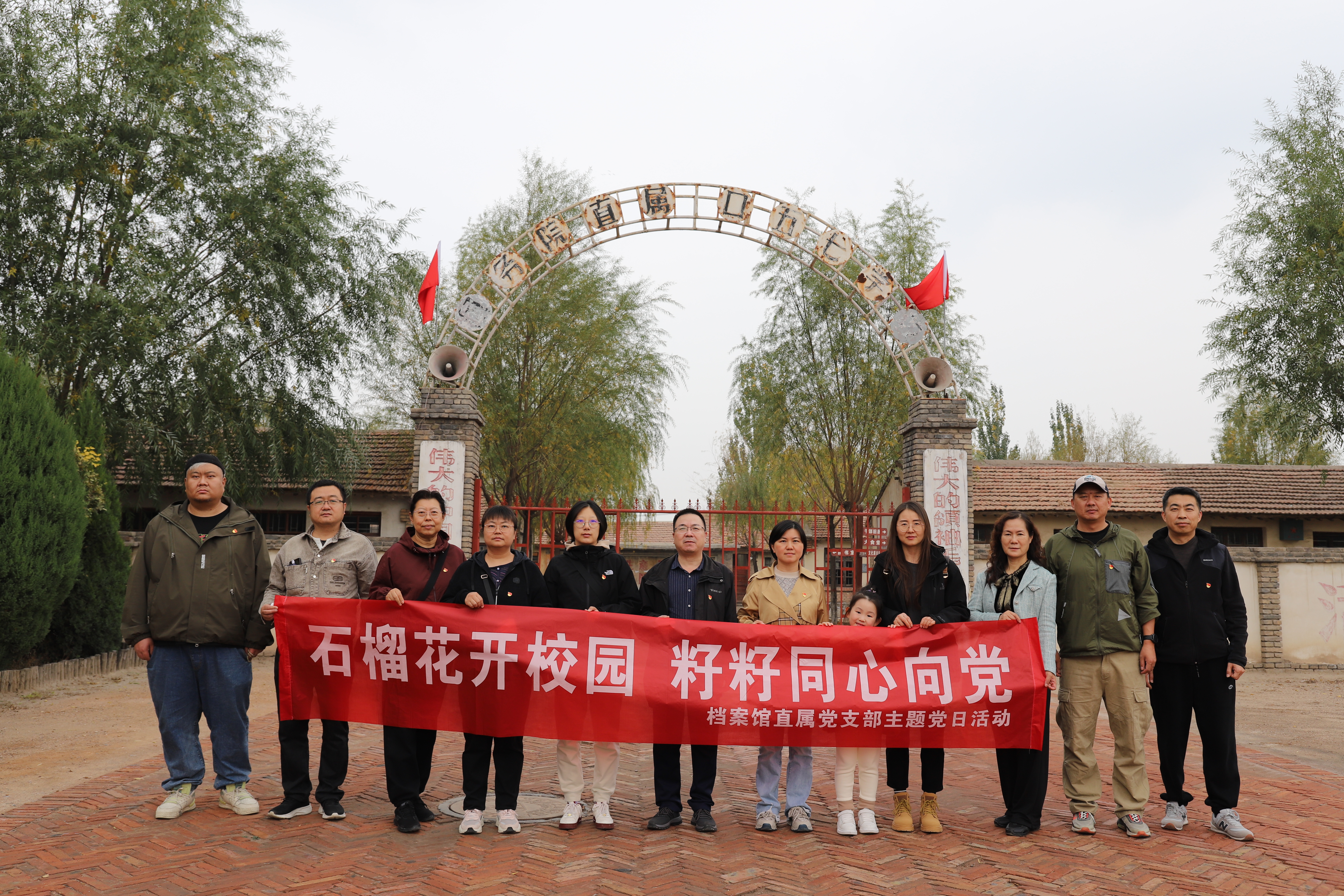 【beat365唯一官方网站新闻中心讯 档案馆】为进一步引导党员厚植家国情怀,赓续红色血脉,坚定理想信念,铸牢中华民族共同体意识,10月18日,档案馆直属党支部组织党员赴石嘴山市国务院直属口五七干校开展“石榴花开校园 籽籽同心向党”主题党日活动。