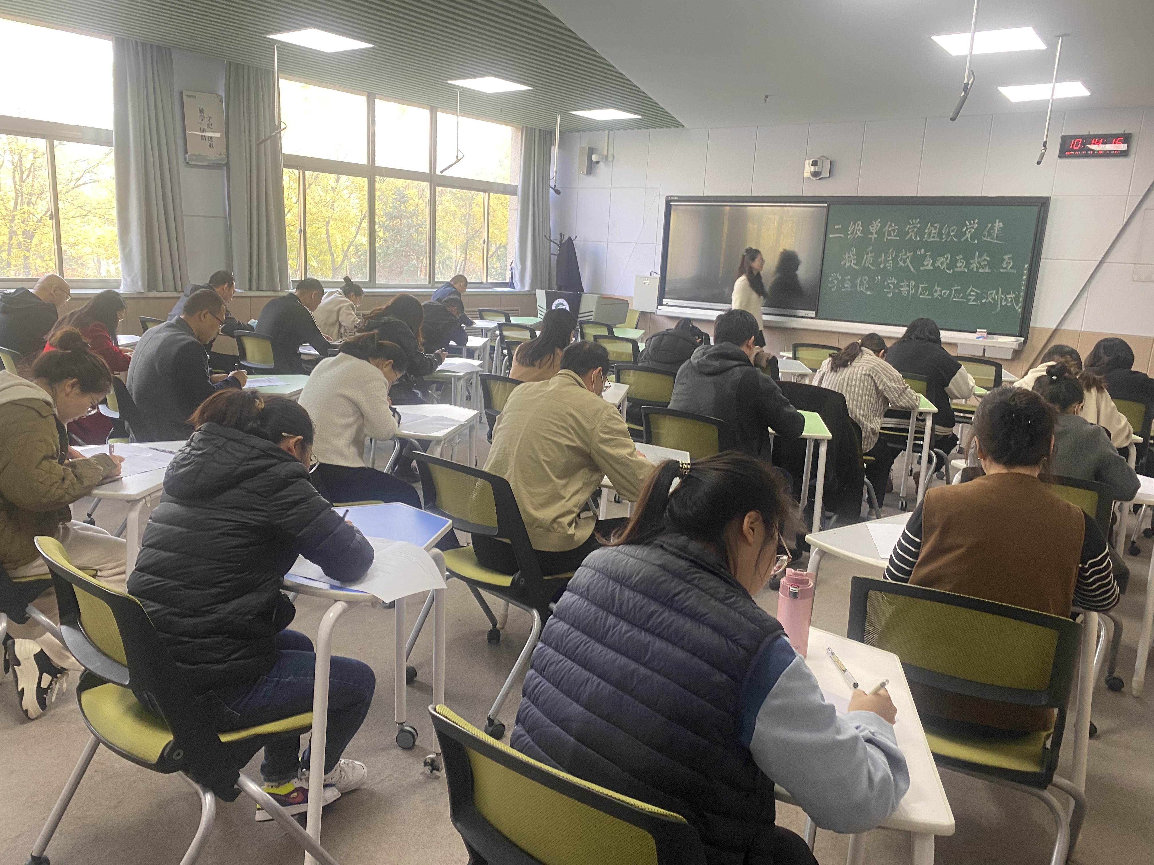 活动根据校区设置和党组织建设实际分为8组,通过党组织自查、现场观摩党建阵地、集中查阅党建资料、座谈交流和交叉点评、抽取教职工(学生)党员代表进行应知应会理论知识测试等方式,利用10个工作日对各级党组织党建工作情况进行了一次深入互查、盘点、梳理。各单位在互观互检和交流研讨中汲取工作经验,集中梳理党建工作的特色亮点,研究解决标准化规范化创建、推动党建与业务工作融合发展等方面遇到的困难和问题,在互观互学中促提升、在交流互鉴中拓思路,营造了“比学赶超”的浓厚气氛。